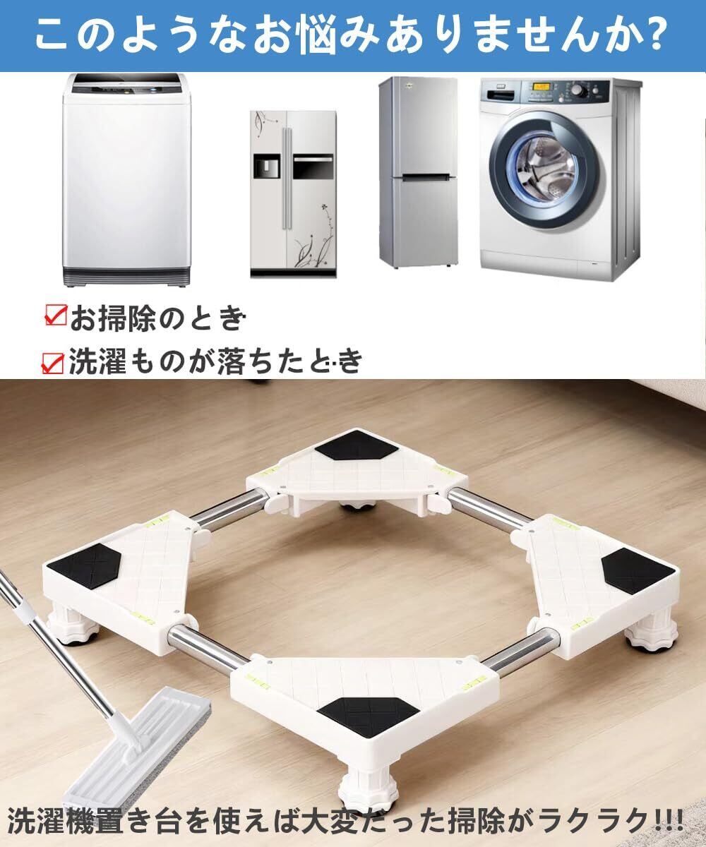 【新着商品】ZENG YUAN洗濯機 台 洗濯機 置き台かさ上げ 冷蔵庫置き台 高さを調節可能 ドラム式や全自動洗濯機に幅/奥行43~68cm対応 防振パッド付き 減音防振 耐荷重350KG | Cherry Blossoms