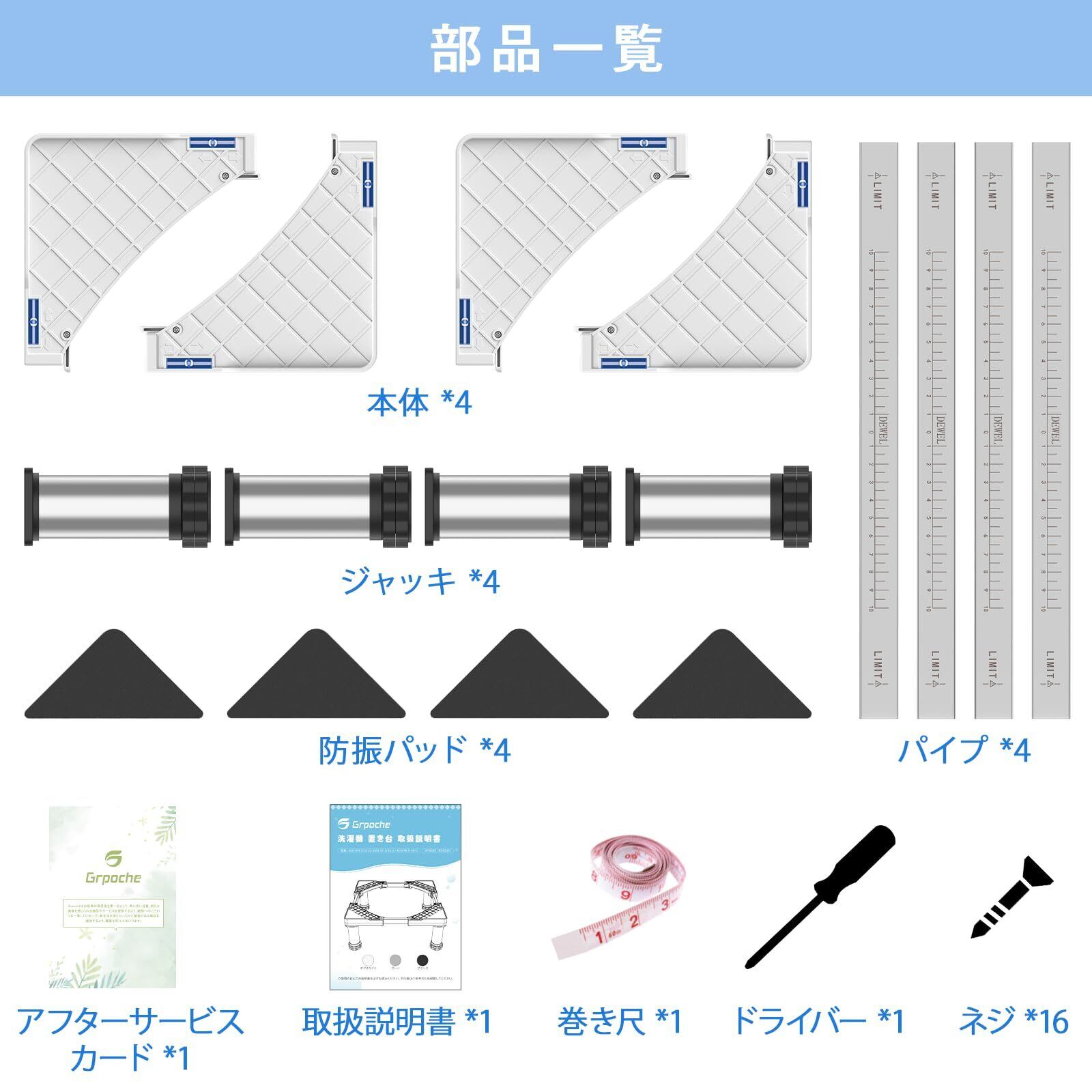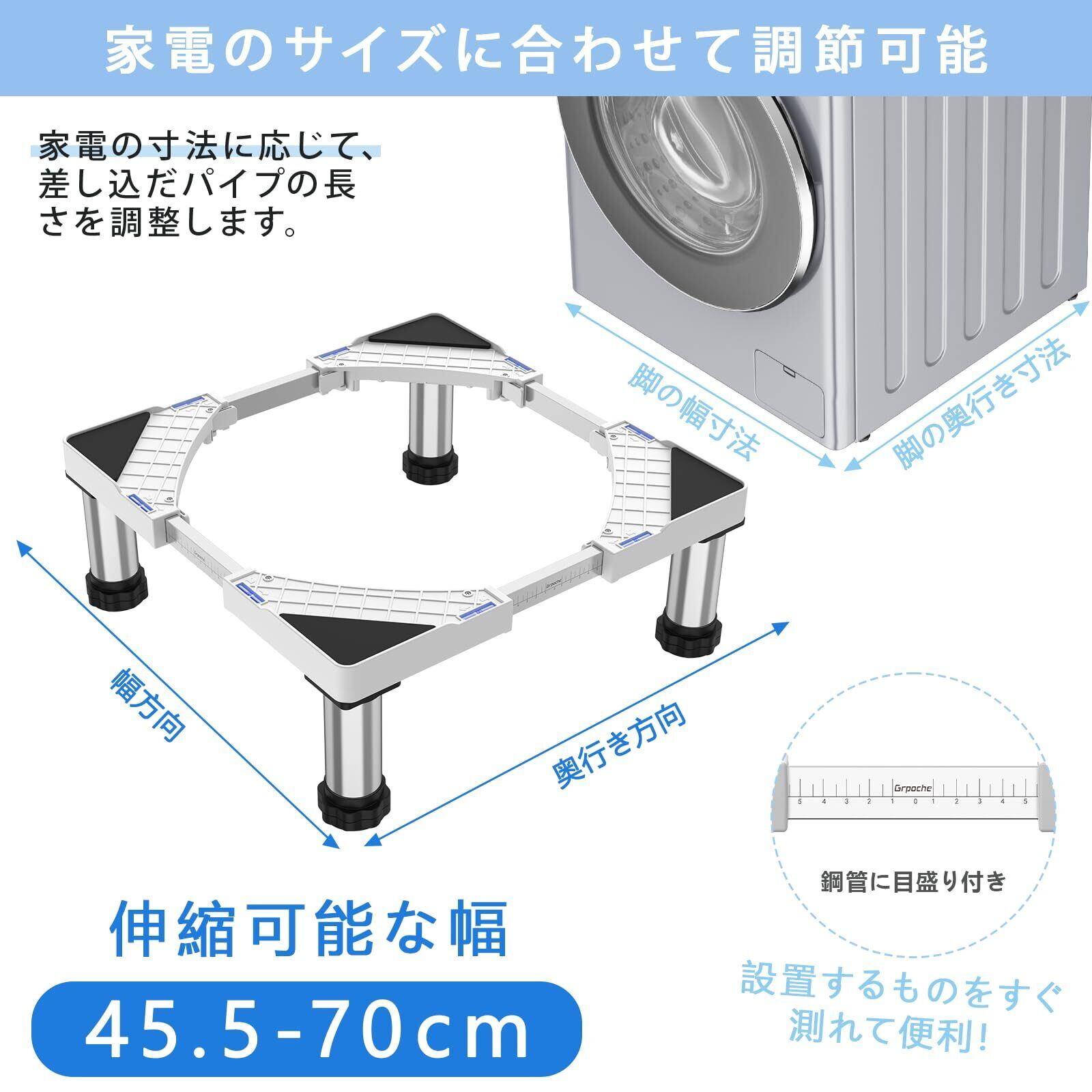 【特価セール】Grpoche 洗濯機嵩上げ台 洗濯機 台 冷蔵庫 置き台 4足 15cm 昇降可能 かさ上げ台 奥行/幅:45.5~70cm 高度調節18~21cm 耐荷重300kg ジャッキ付き 底上げ 防振 冷蔵庫 台 異音振動軽減 防振パッド(オフホワイト, 18~21cm高さ調節) | Cherry Blossoms