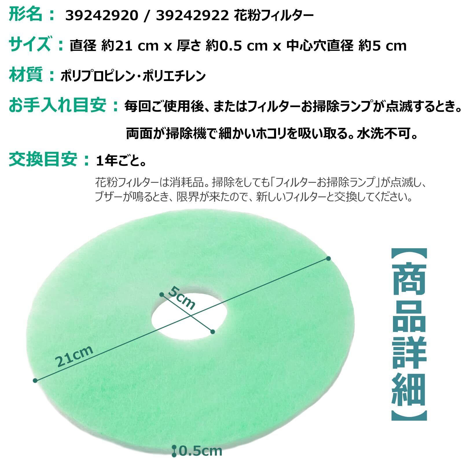 【形名】 39242920 / 39242922 花粉フィルター 。材質:ポリプロピレン・ポリエチレン。