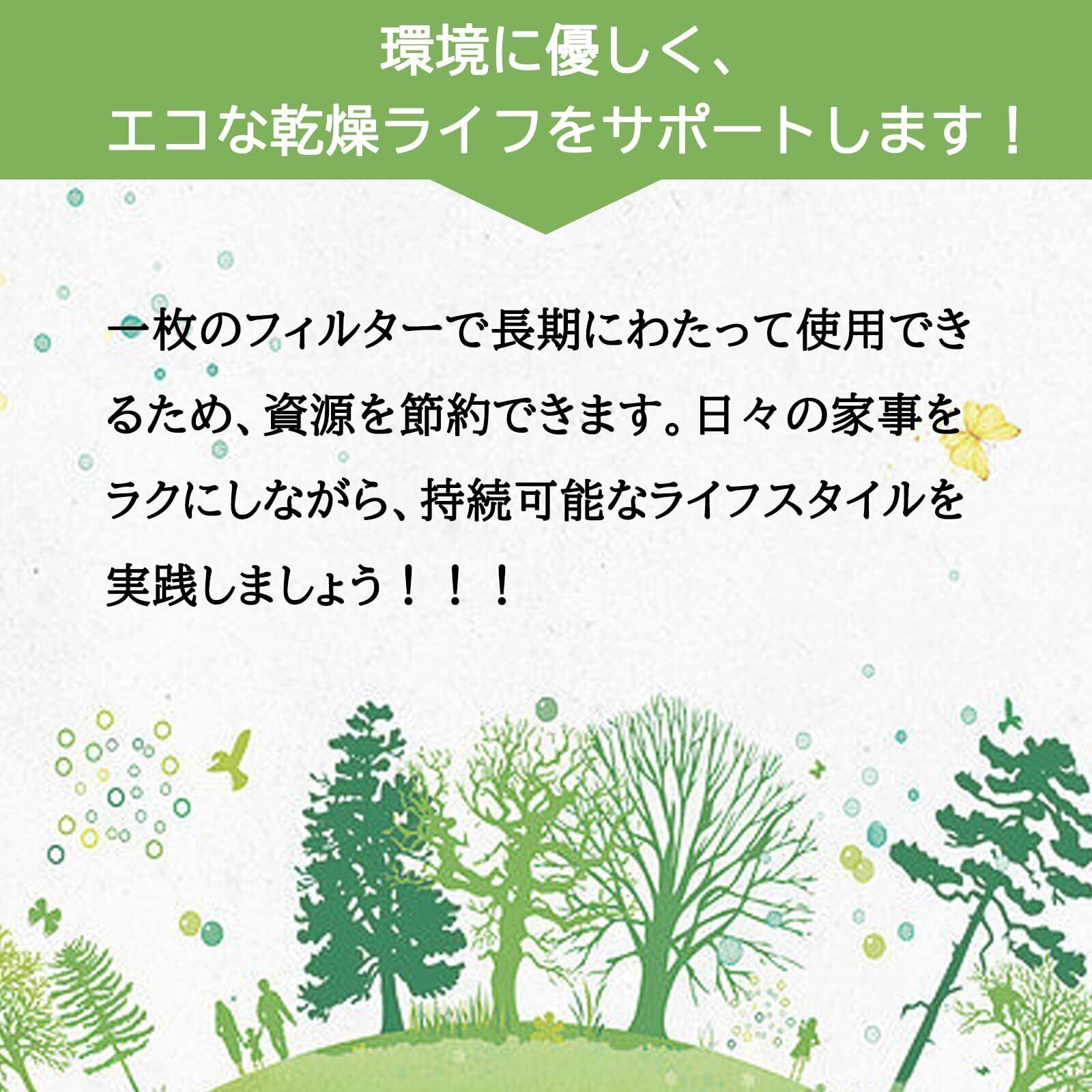 環境に優しく、エコな乾燥ライフをサポートします! 不織布素材は交換可能で、使用後は簡単に交換して清潔な状態を保つことができます。フィルターの汚れに悩まされることもありません。 環境に優しく、エコな乾燥ライフをサポートします!一枚のフィルターで長期にわたって使用できるため、環境に配慮した使い捨て品に比べて資源を節約できます。日々の家事をラクにしながら、持続可能なライフスタイルを実践しましょう。
