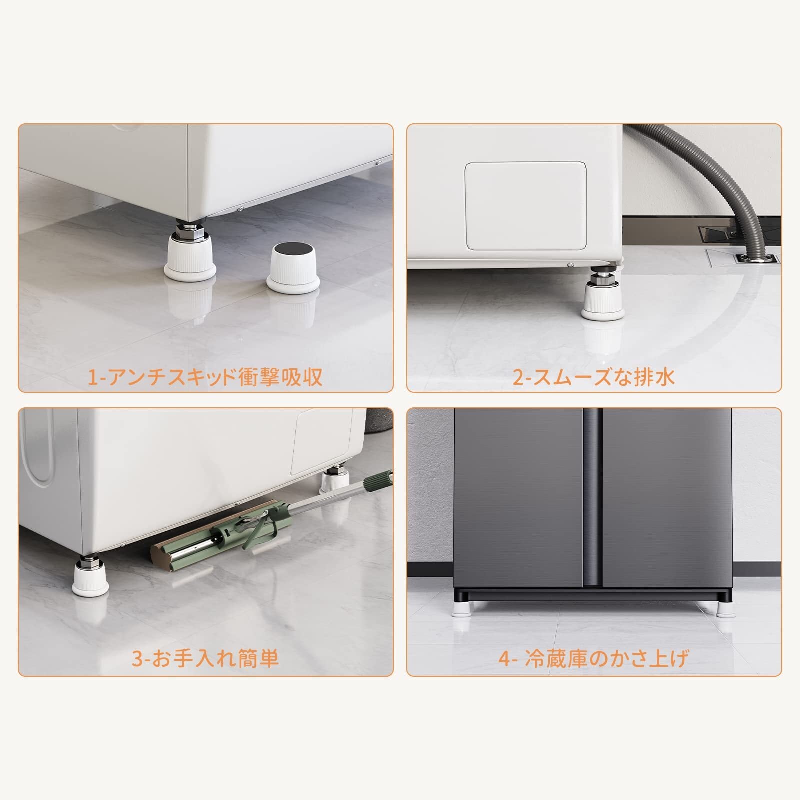nediea 洗濯機 かさ上げ台 洗濯機用防振かさ上げ台 高さ調整 防音/防振ゴムマット 洗濯機用置き台 防振ゴム 洗濯機かさ上げ台 洗濯機 騒音軽減 振動吸収マット 4点セット