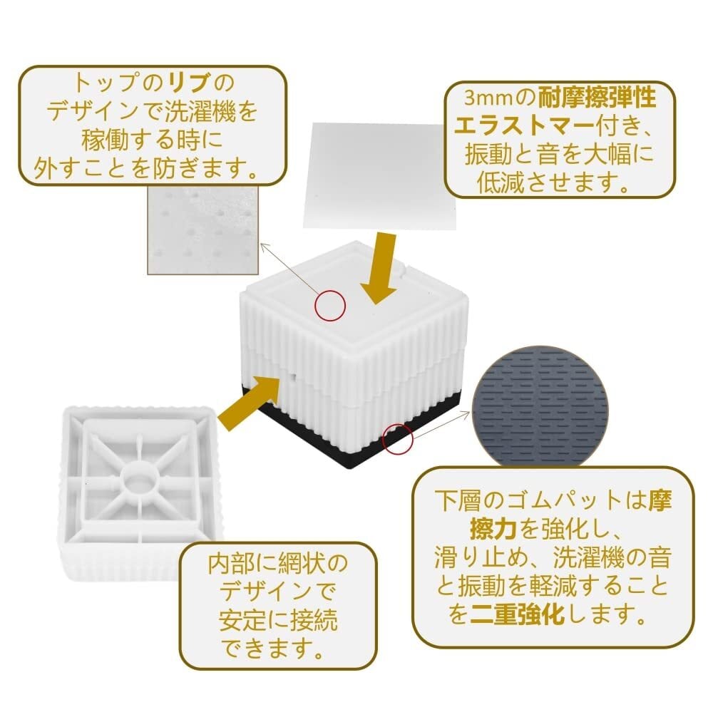 かさ上げ台 防振ゴム 置き台 嵩上げ台 高さ5.7cm 耐震 異音吸収 滑り止め 床に傷防止 4個入り 洗濯機用 乾燥機用 冷蔵庫用 洗濯機用据付脚