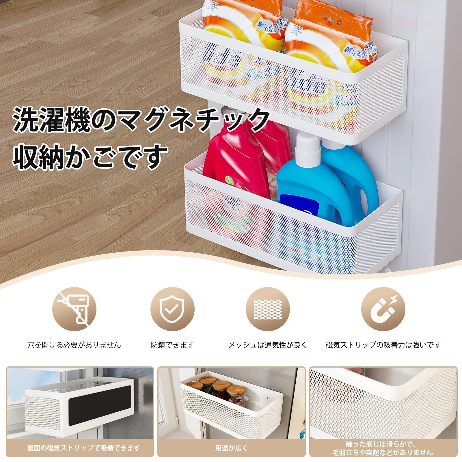 【2022最新】多機能磁気洗濯機サイドラック マグネット 小物入れ 洗剤ラック 洗濯機横 収納 調味料ラック かご 収納 穴あけ不要 大容量 (白, W35cm*D13cm*H10cm)