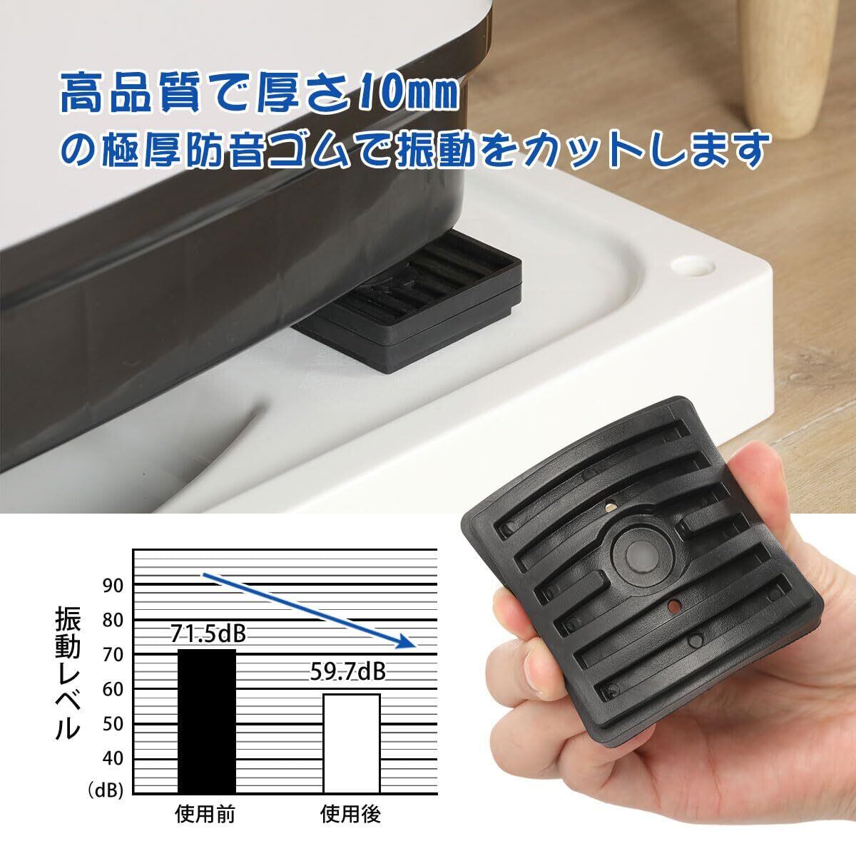 【仕様】:カラー:ブラクラ パッケージ内容:防振マット 4枚入り サイズ:サイズ:幅63×長さ63×厚み13mm(実際に10mm高くなります )ほとんどの洗濯機に装着可能な使用タイプです。