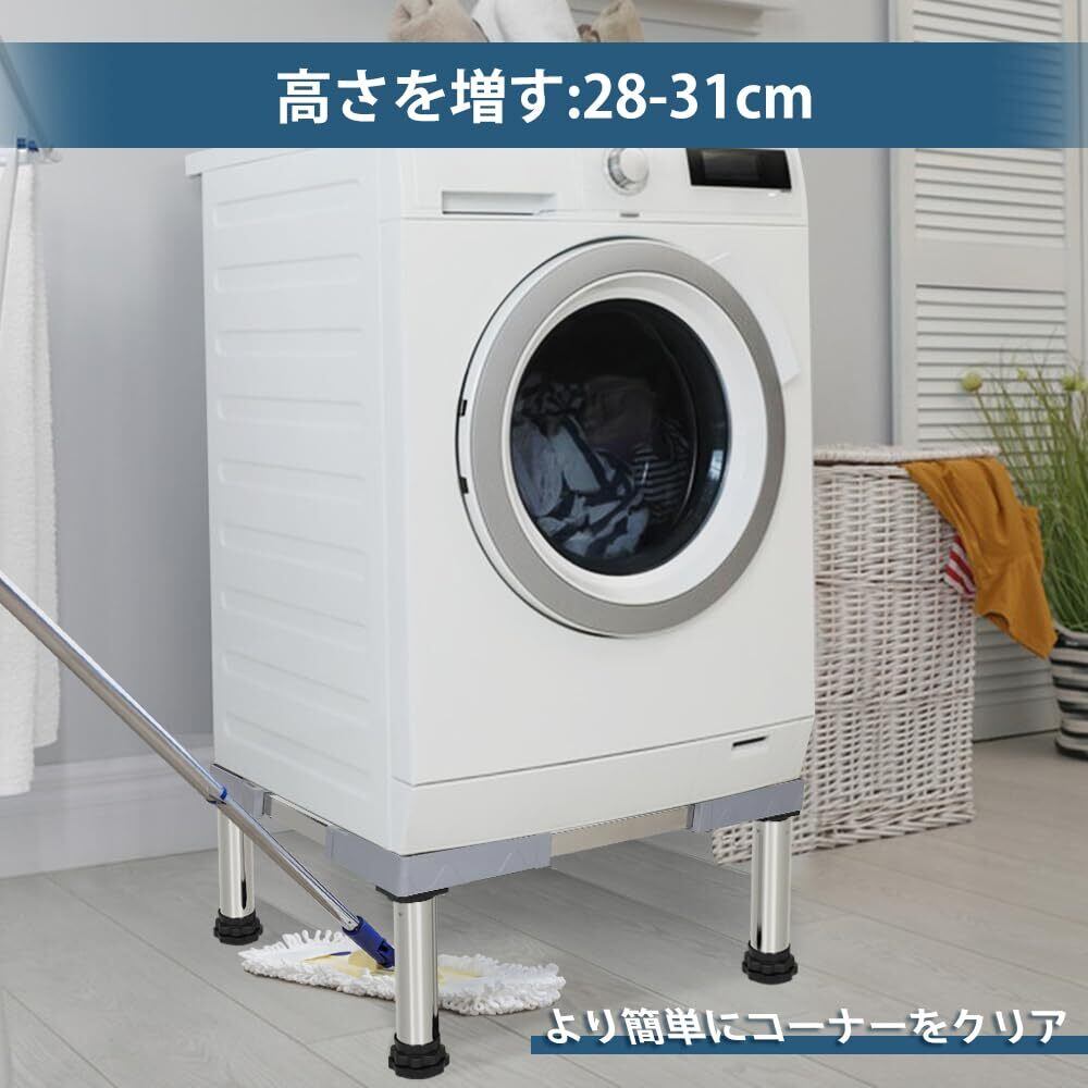 【在庫処分】Kokorona 洗濯機 台 冷蔵庫置き台 かさ上げ28-31cm 4足 高度調節 耐荷重約150kg 縦横41~63cm ドラム式洗濯機 台 かさ上げ 高さ調節 減音防振 洗濯機 冷蔵庫 置き台 伸縮式 調節簡単