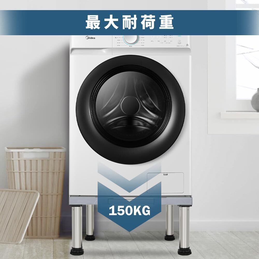 4足のデザインを採用し、設置も非常に簡単です。縦横41~63cmに対応しているため、ほとんどのドラム式洗濯機や冷蔵庫に適用可能。特別な工具も不要で、手軽に取り付けられます。調整も簡単で、いつでもお手入れがしやすい設計です。