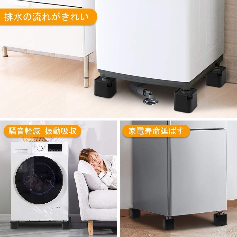 Uping 洗濯機用防振かさ上げ台 高さ調整・防音・防振ゴムマット 洗濯機用置き台 かさ上げ用 (一般用/高さ91mm) 4個入り ブラック