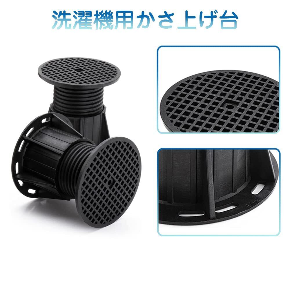 【新着商品】サムコス 洗濯機 台 4個入り 黒 高さ調整 底上げ台 洗濯機用 かさ上げ台 かさ上げ 腐食なし 縦型 据付脚 防水パン かさ上げ 冷蔵庫 乾燥機 机 ラック 掃除 メンテナンス