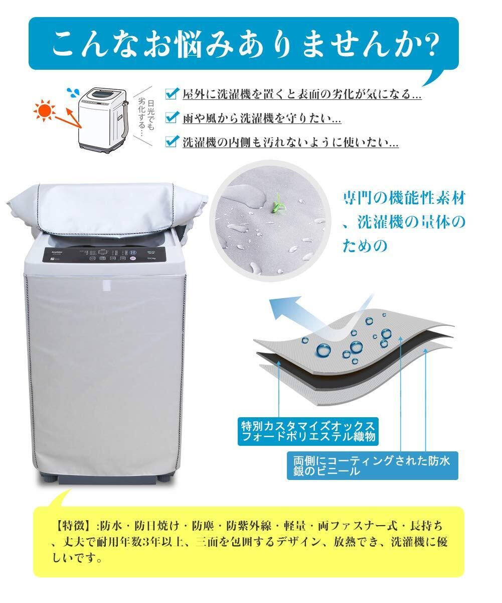 [Mr.You]洗濯機カバー 防水 防塵 防湿 3面包み オックスフォード マジックテープ 全自動 防水生地【M】6-8KGに対応