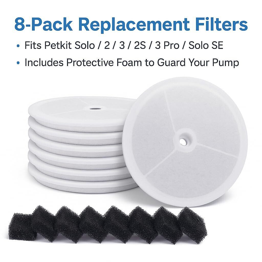【数量限定】【8個入り】ペット用給水機 交換フィルター&スポンジセット|PETKIT互換|5層ろ過構造|活性炭&イオン交換樹脂|ぬめり・ニオイ対策|ペット自動給水器用|猫・小型犬対応
