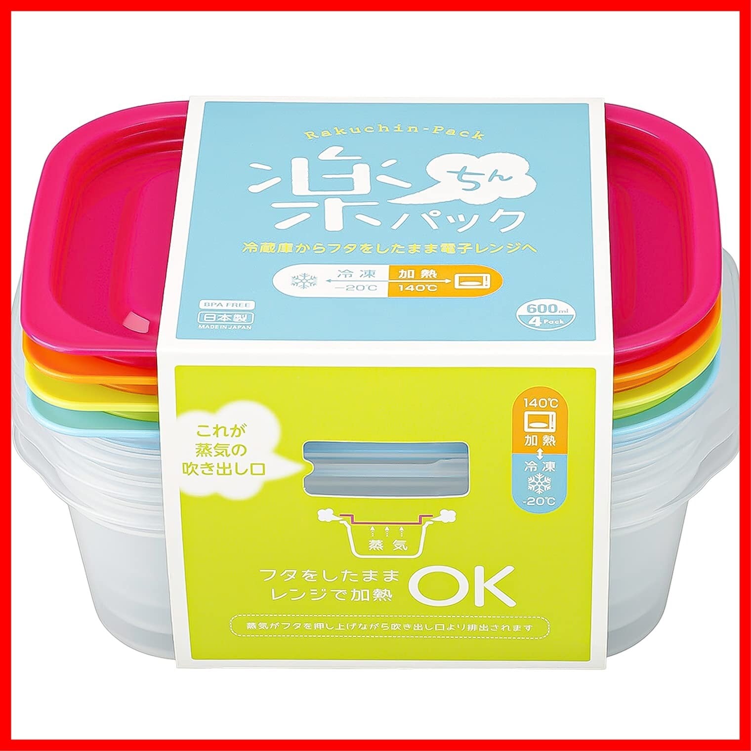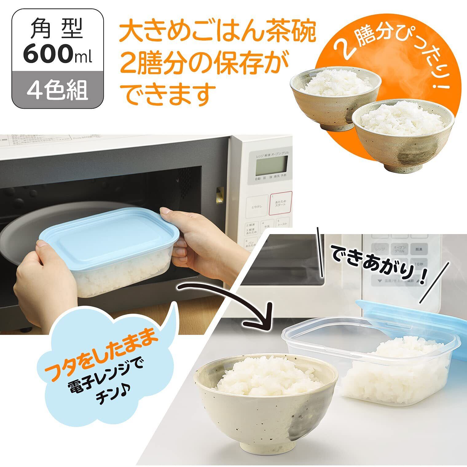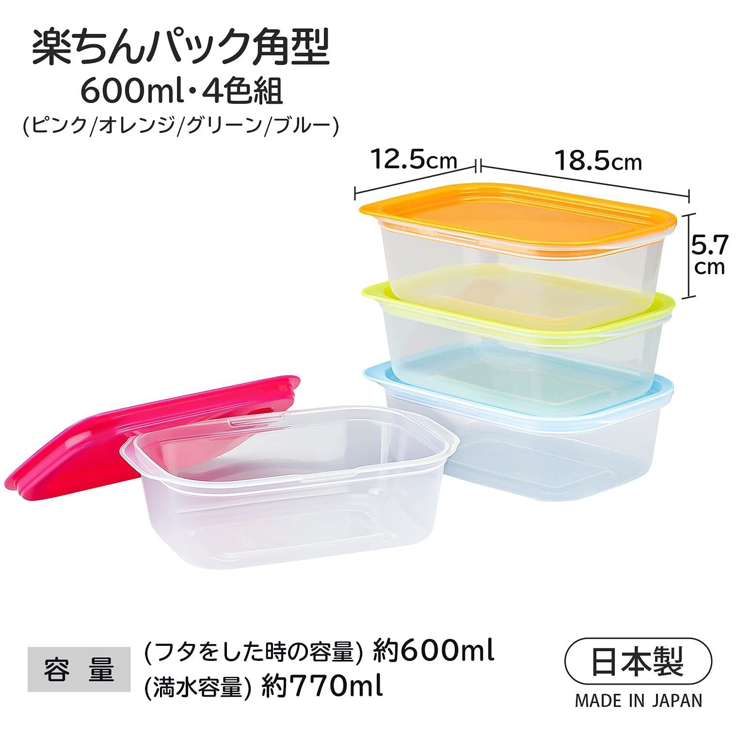 イノマタ化学(Inomata-K) 電子レンジ容器 楽ちんパック 角型 600ml 4色組 日本製 9806 ピンク/オレンジ/グリーン/ブルー