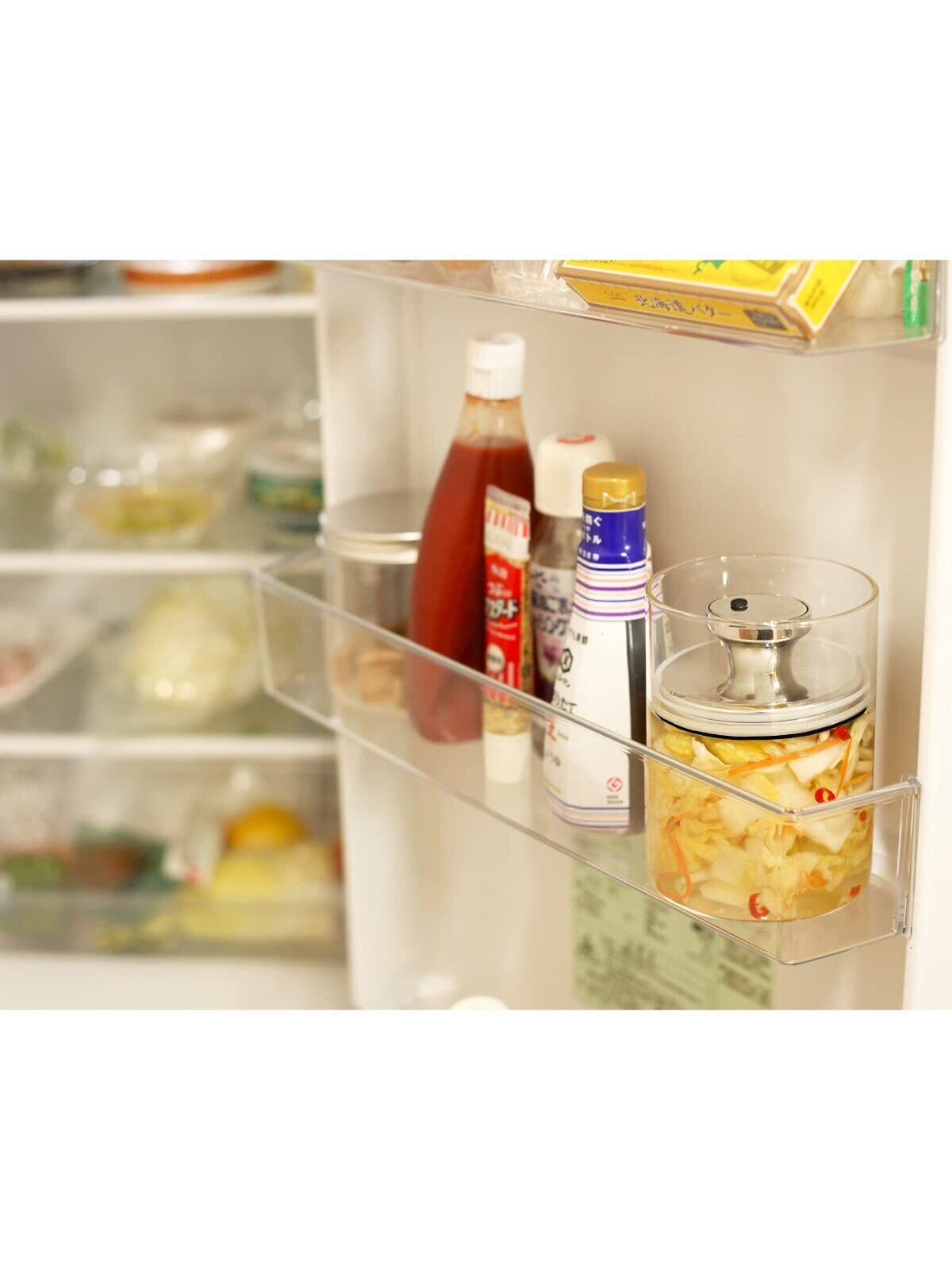 スリムなデザインは、パントリーや冷蔵庫の整理に最適です。穀物やお菓子、スパイスなど、さまざまな食材の保存が可能で、インテリアとしてもおしゃれに映えます。透明なガラスなので、中身が見やすく、必要なときにサッと取り出せる便利さが魅力です。