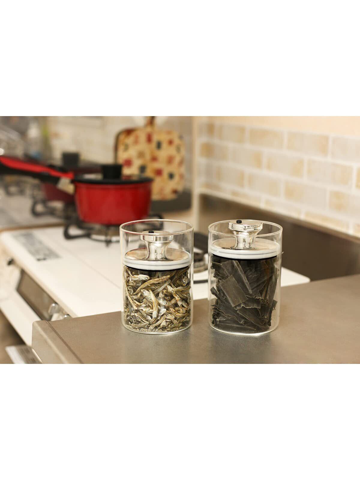 【新着商品】密閉 ガラス キャニスター 保存容器 エア・リデューサー スリム M 900cc F9483 シルバー