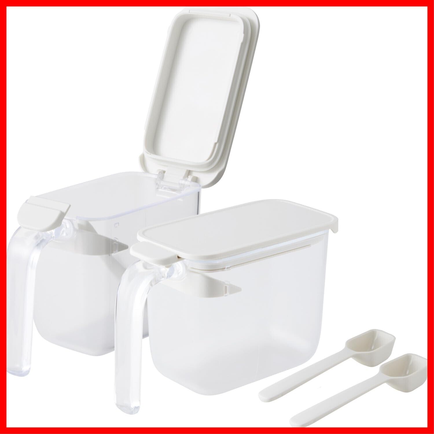 マーナ (marna) 調味料ポット スプーン付き (ワンタッチで開く) 調味料入れ (パッキン付 湿気防止) 塩 砂糖入れ (2個入り / ホワイト) グッドロックコンテナ R209W