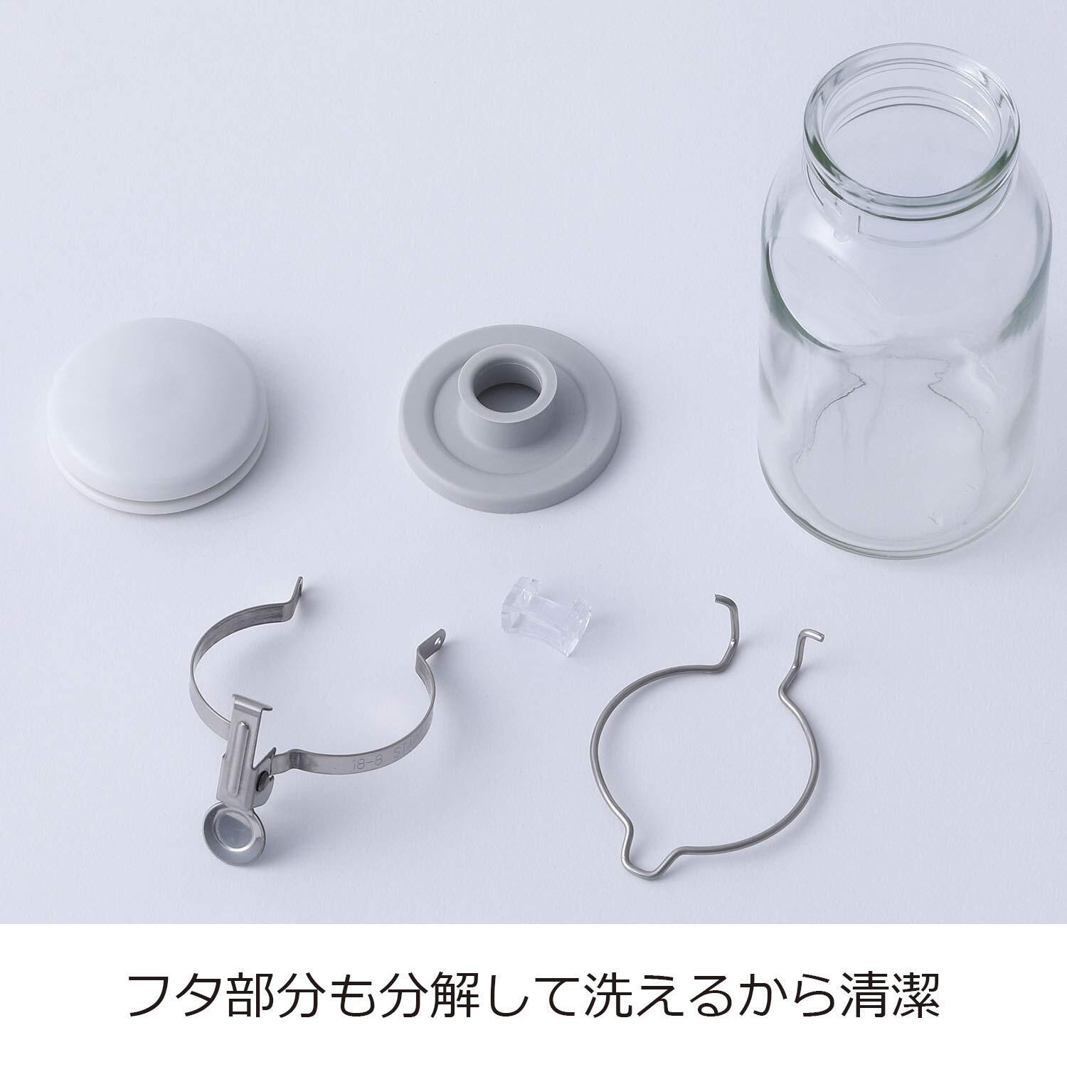 材質:本体/ソーダライムガラス、フタ/PP、中栓・パッキン/シリコンゴム、金具/18-8ステンレス