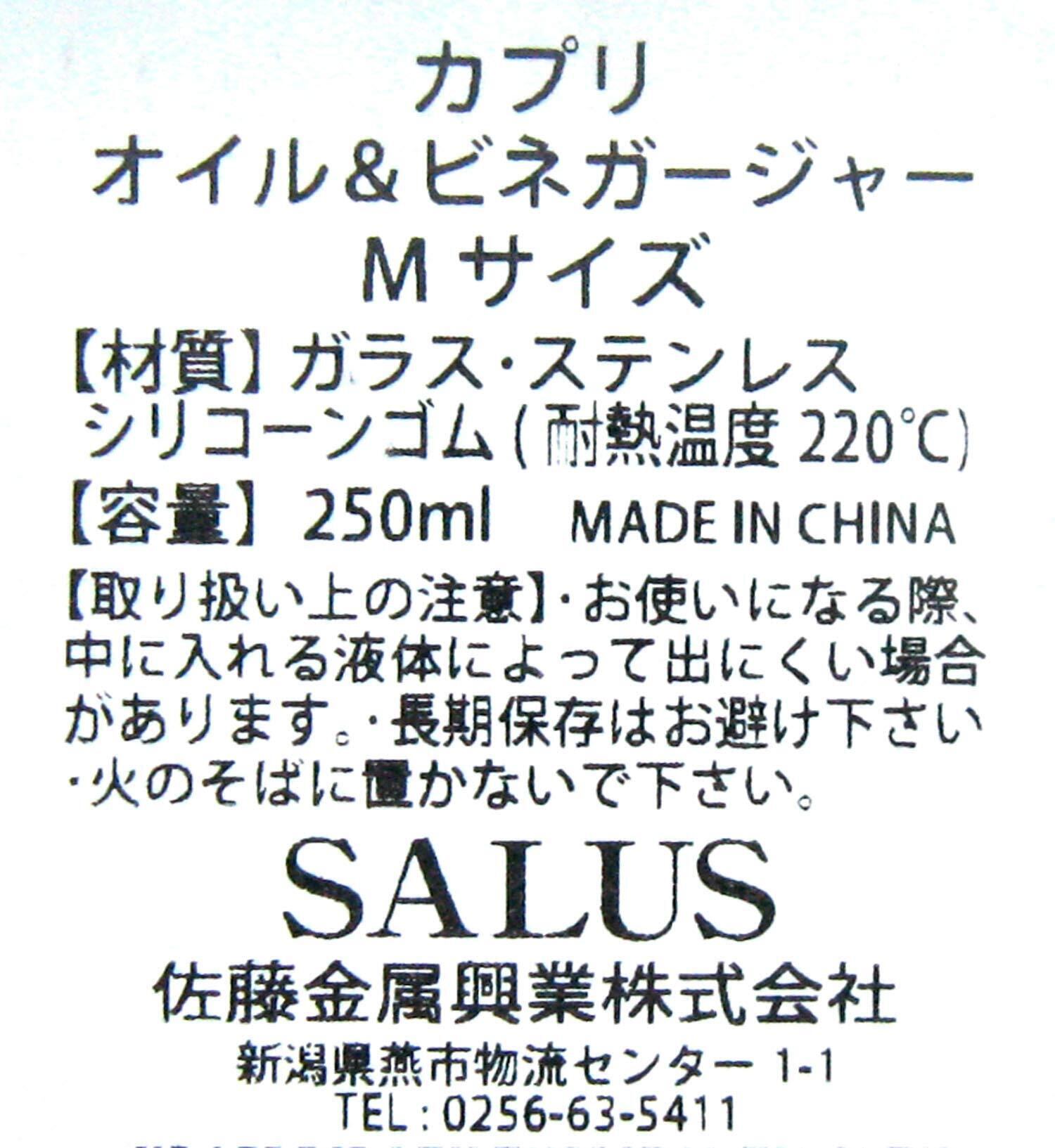 佐藤金属興業 SALUS カプリ オイル&ビネガージャー M