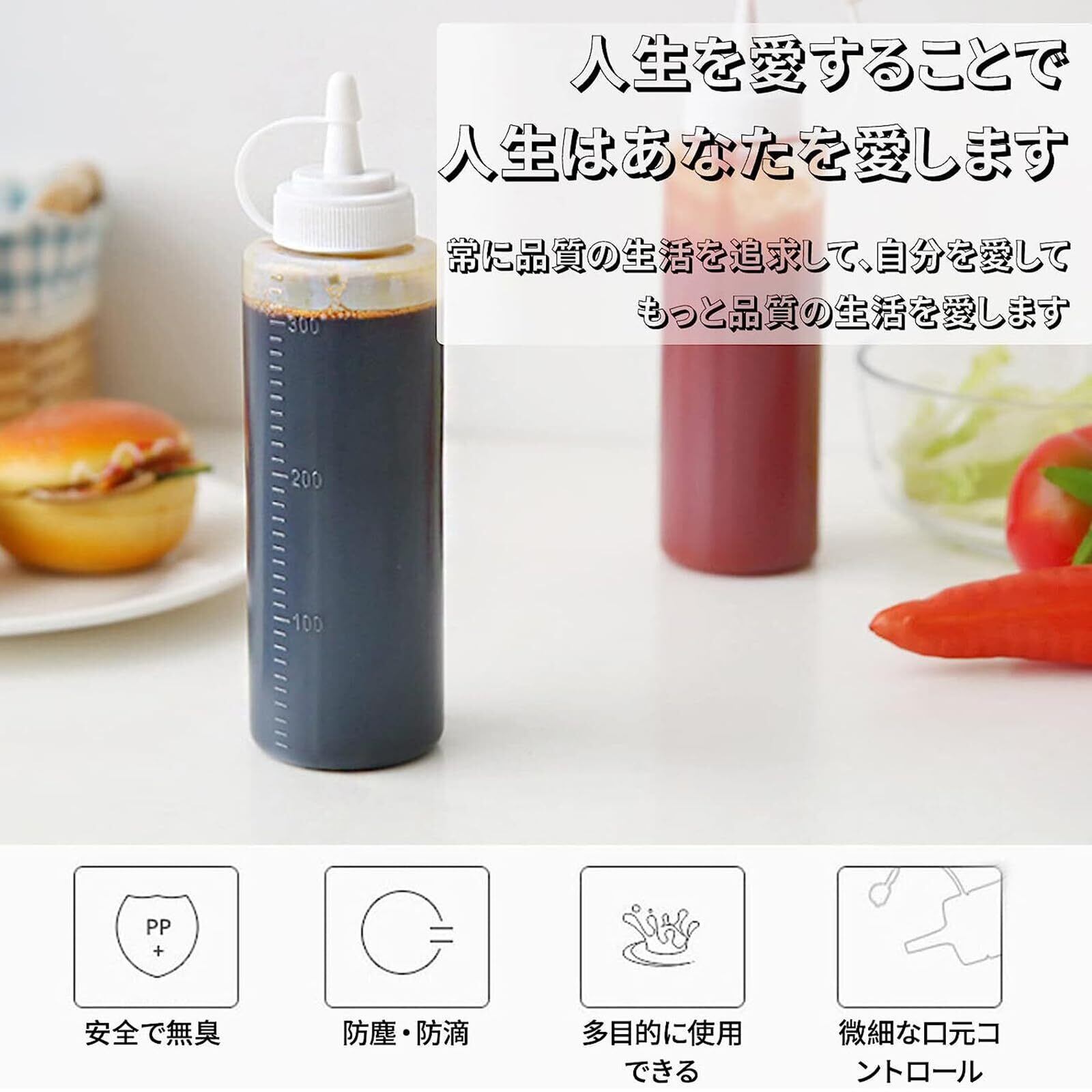【調味料ボトルの材質】: 再利用可能なプラスチッく製。ソース、オイル、酢、ケチャップ、マスタード、マヨネーズディスペンサーとして使用できる。