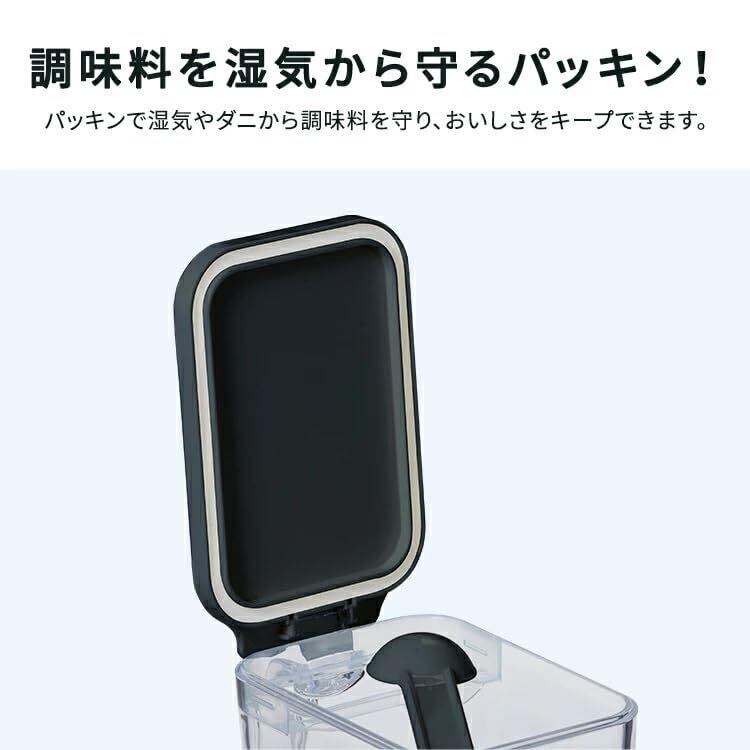 この調味料ポットは、持ちやすい形状で、片手でもスムーズに使用できます。フタの開閉も簡単で、タイミングよく調味料を振りかけることができます。また、透明なボディは中身をぱっと確認できるため、必要なときに手早く取り出せます。