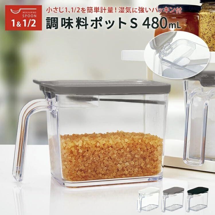 使い勝手の良い、アスベルの「調味料ポット」が新登場です! / 特徴:この調味料ポットは480mlのコンパクトなサイズで、片手でも簡単に操作が可能。擦切り機能が付いており、あなたの調理をよりスムーズにサポートします。スリムなデザインはキッチンのスタイルを崩さず、収納にも最適です!