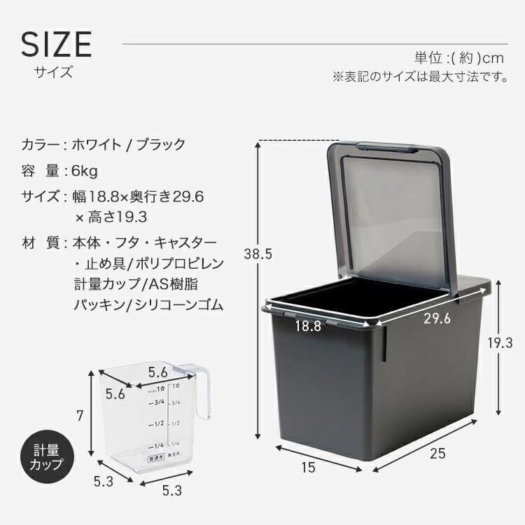6kgの容量は、ご家庭にぴったりのサイズ。パッキン付きのロック機能により、内部の湿気を防ぎつつ、コクゾウ虫などの害虫から大切なお米をしっかりとガードします。また、鮮度を保持することで、いつでも美味しいご飯を楽しむことができます。