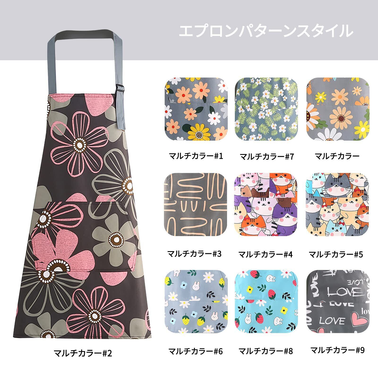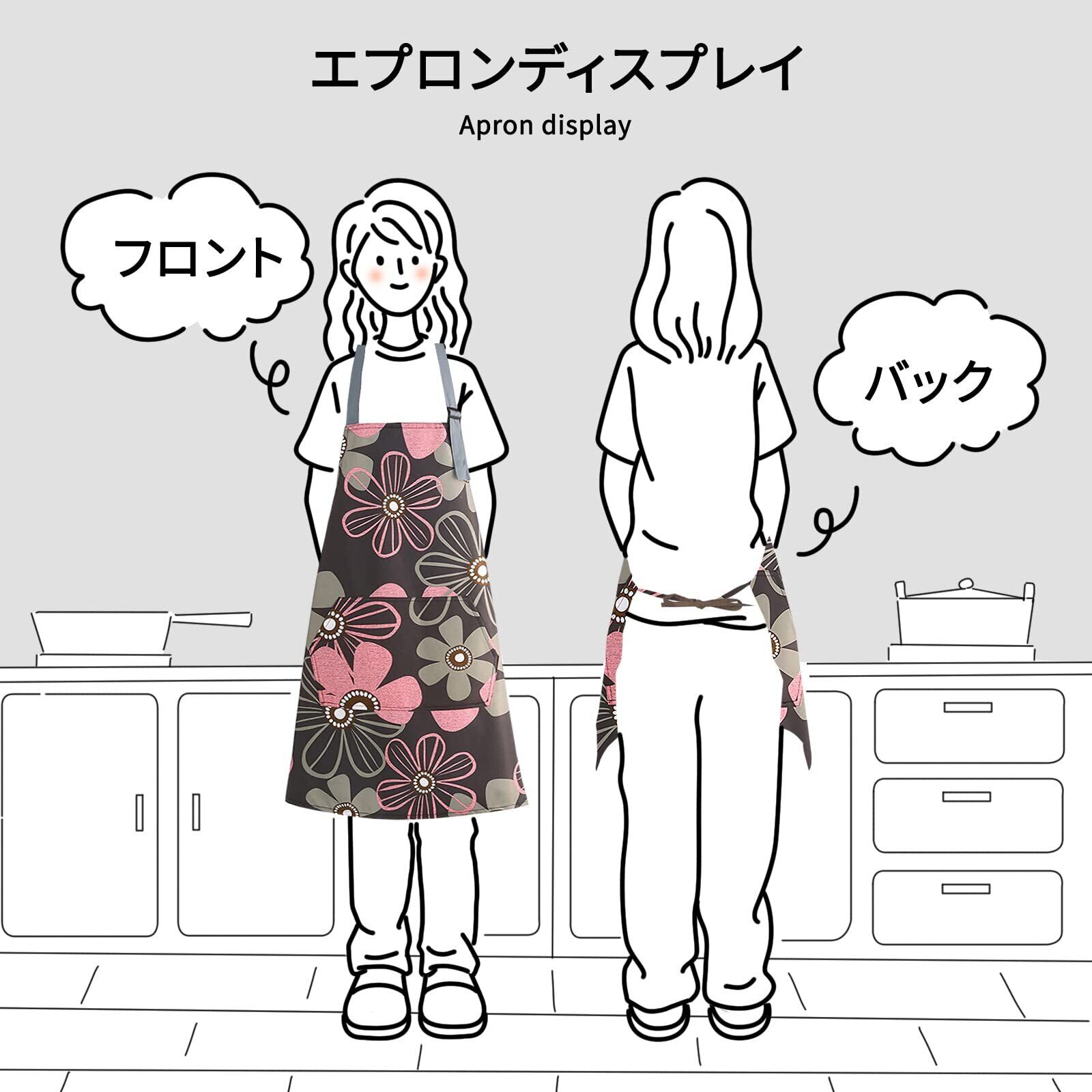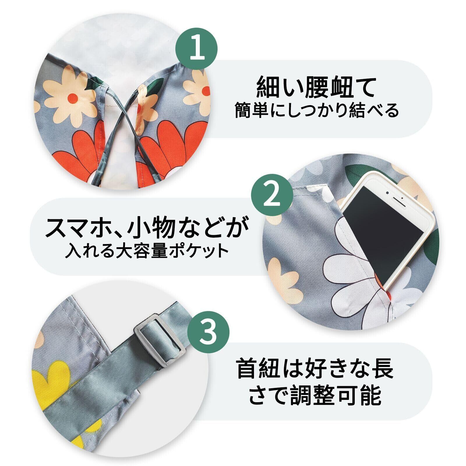 [SFTRADE] エプロン 女性用 首掛け 北欧風 花柄シンプル 防水 大容量ポケット 汚れにくい シワ防止 料理教室用 カフェ 保育士