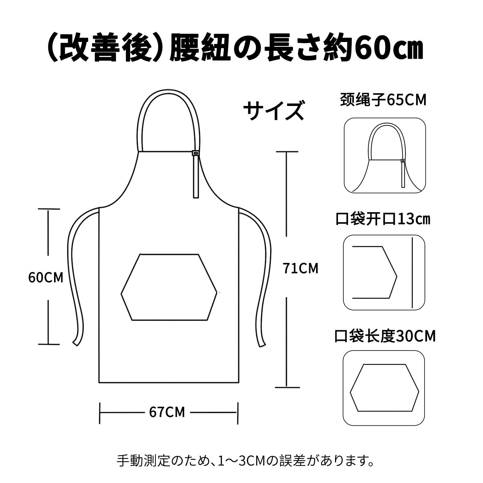 【サイズ】:レディースエプロンの着丈は約71cm、幅は約68cm.(改善後)腰紐の長さ約60cm(詳細な寸法については、添付の写真を参照してくださいませ)。