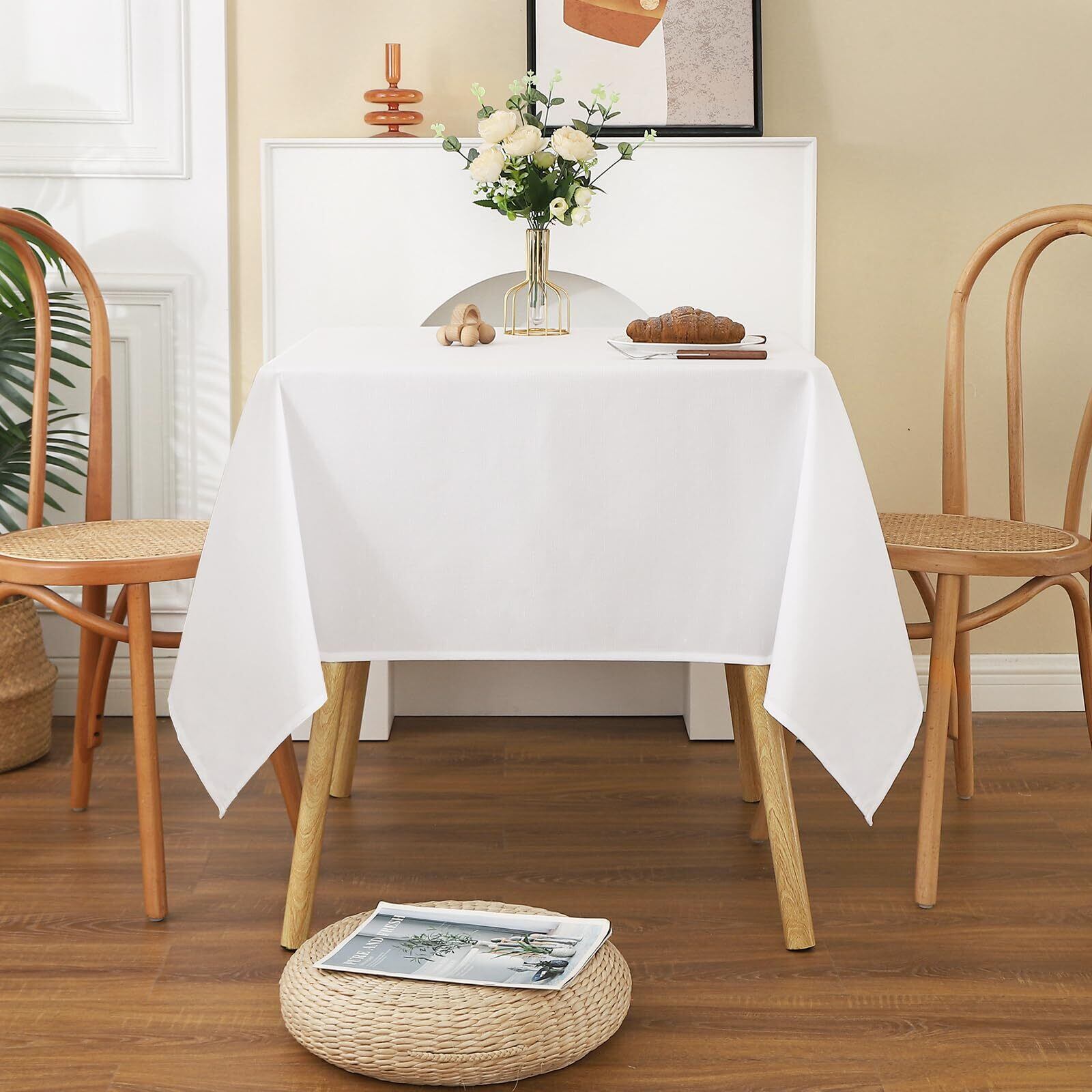 AooHome 白 テーブルクロス 正方形 撥水 小さめ 方形 無地 汚れ防止 おしゃれ シンプル テーブルカバー 耐熱 丸洗い お手入れ簡単 業務用・家庭用 ホワイト 140x140cm