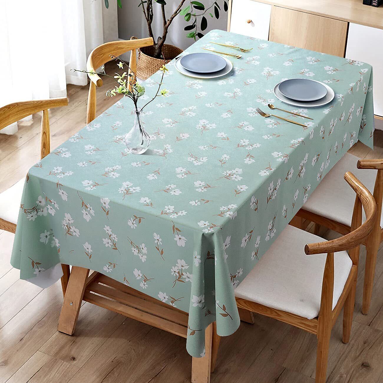 【人気商品】LOHOMEVE テーブルクロス ビニール おしゃれ テーブルカバー 撥水 桌布 正方形 長方形 北欧 汚れ防止 防水 防油 耐熱 pvc製 テーブルマット テーブルランナー グリーン 花柄 140×180CM | Cherry Blossoms