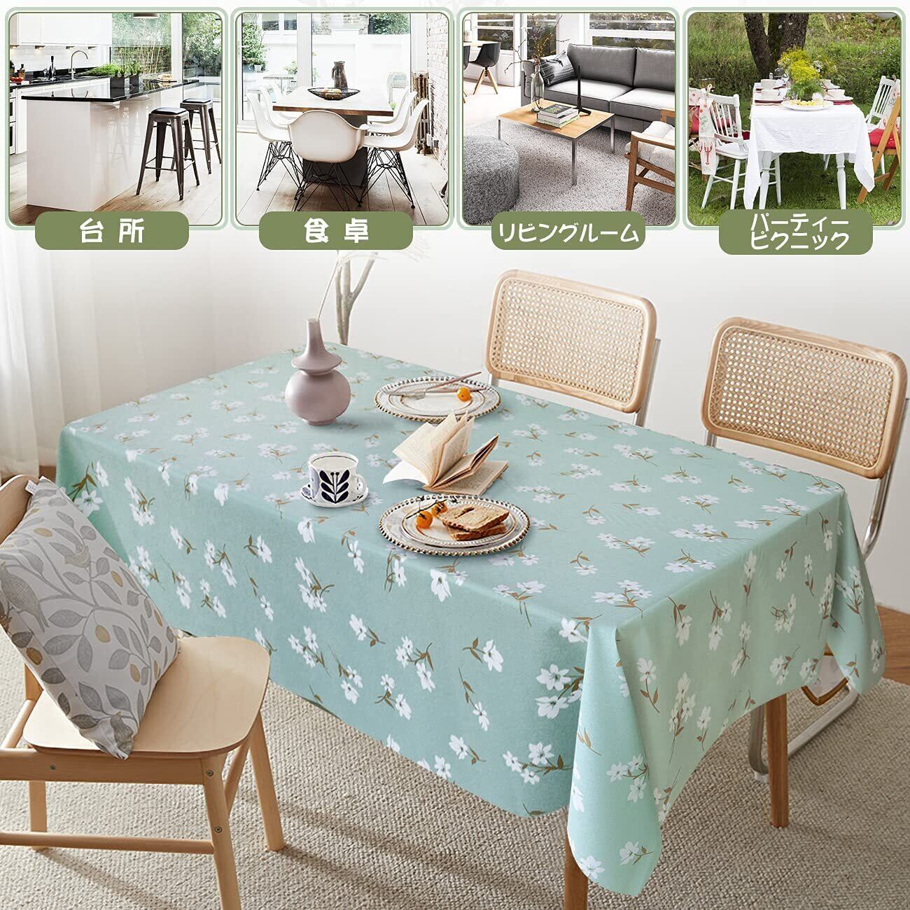 【人気商品】LOHOMEVE テーブルクロス ビニール おしゃれ テーブルカバー 撥水 桌布 正方形 長方形 北欧 汚れ防止 防水 防油 耐熱 pvc製 テーブルマット テーブルランナー グリーン 花柄 140×180CM
