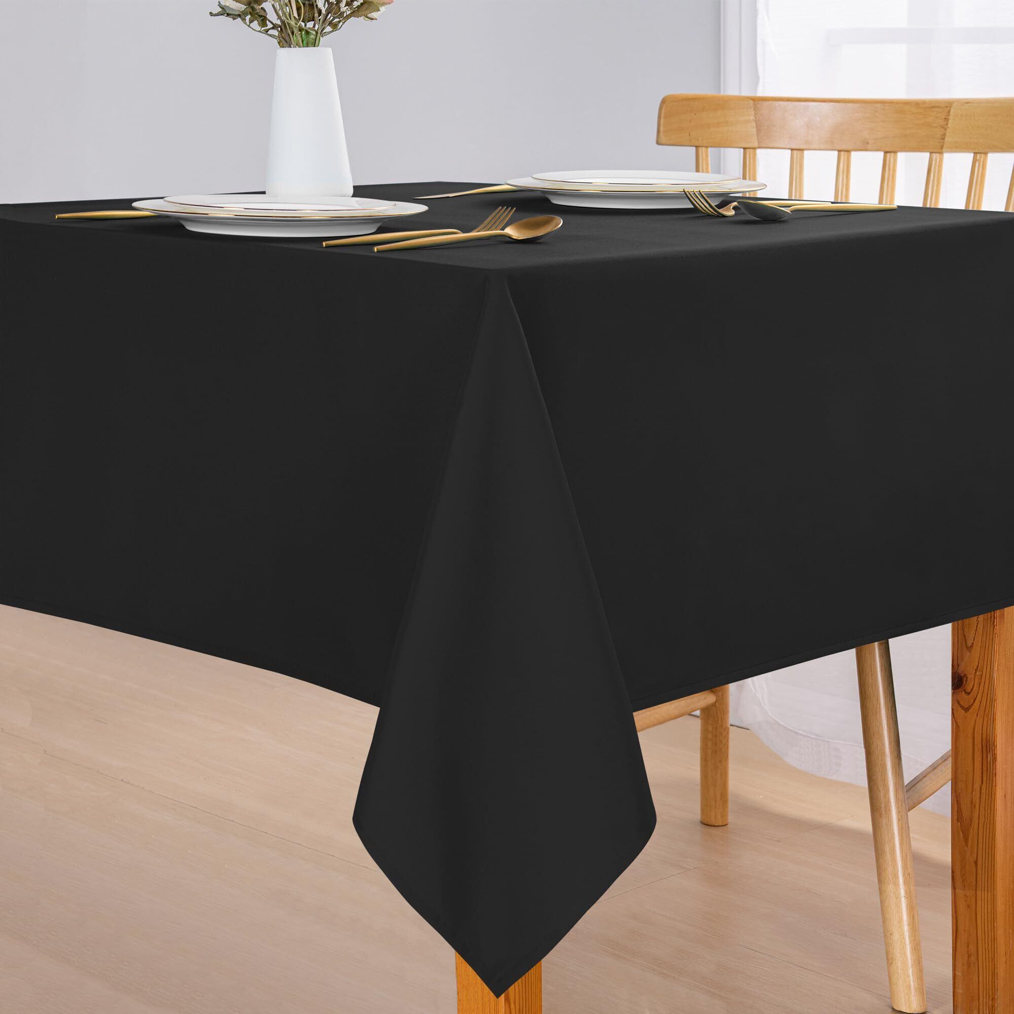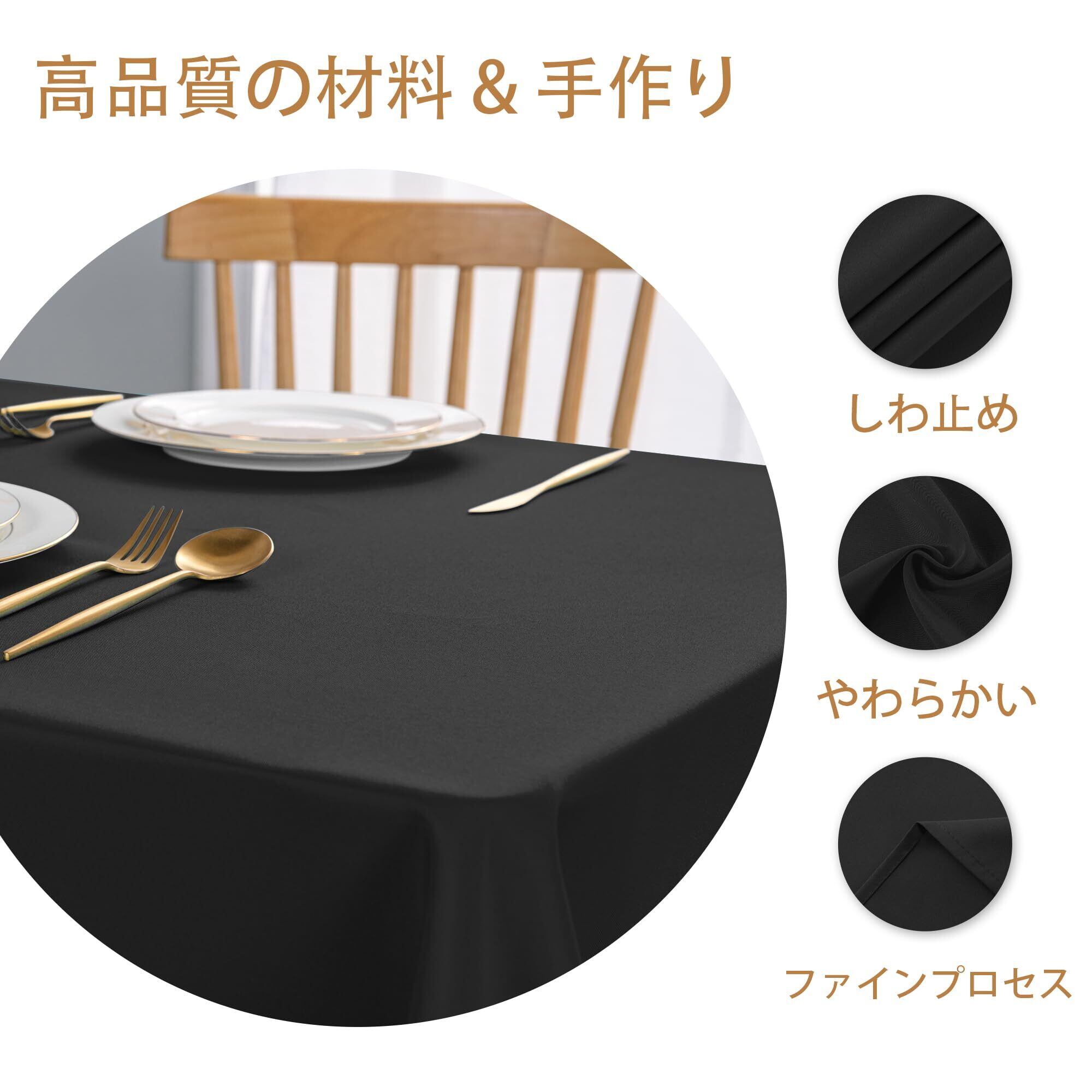 DWCN テーブルクロス 撥水加工 無地 北欧 汚れ防止 耐熱 長方形 テーブルカバー ポリエステル製 洗濯可 食卓 パーティー用 ブラック 135×180cm
