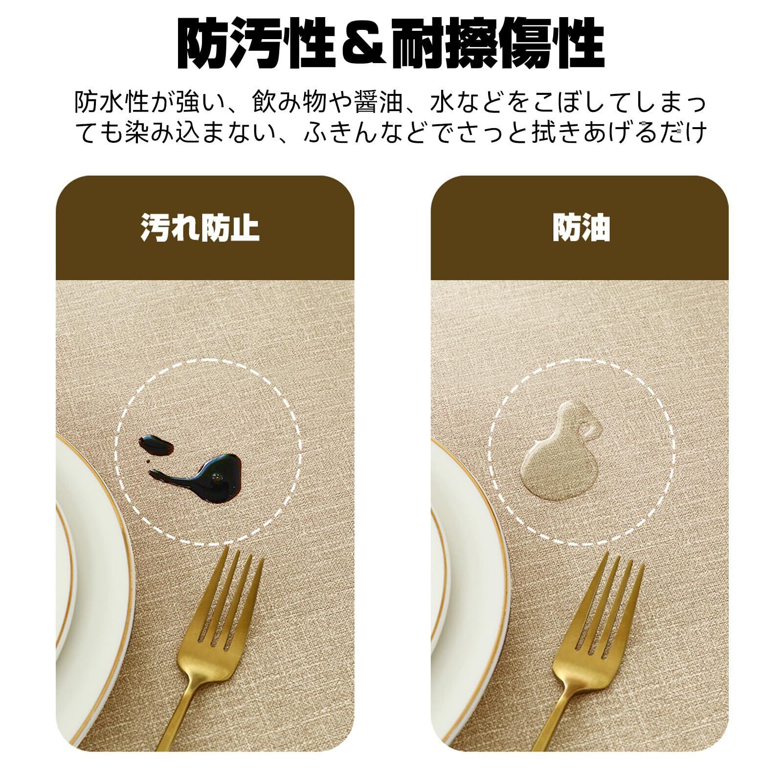 【防水・防汚・お手入れ簡単】 表面に特殊加工を施しており、水や油をはじき、汚れが染み込みにくい仕様 です。飲み物をこぼしてもサッと拭き取るだけで簡単にお手入れ可能。油汚れや食べ物のカスも拭くだけで清潔に保て、面倒な洗濯の必要がありません。毎日のお食事やパーティーでも快適にお使いいただけます。