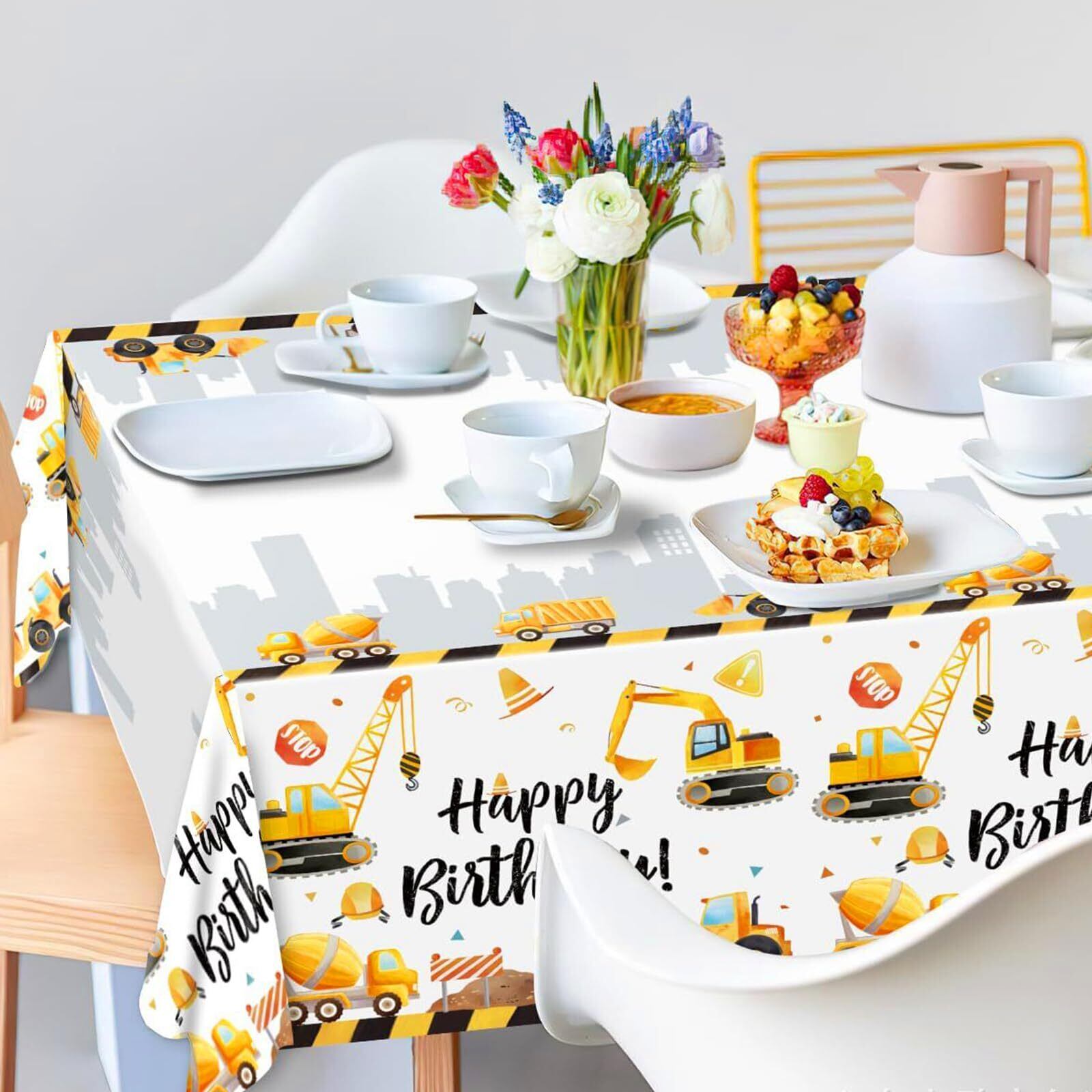 楽しい雰囲気を演出する「Hnonoxy テーブルクロス」が新登場です! / 特徴:137 x 274 cmの大きなサイズは、パーティーや誕生日のお祝いに最適です。イエローの明るいカラーは、子供たちに大人気の建設テーマで、特別な日を一層盛り上げます。