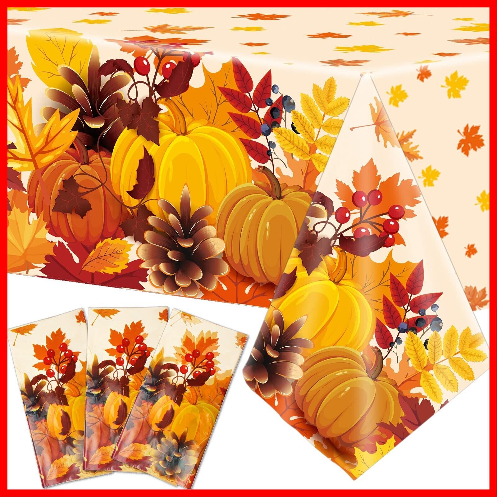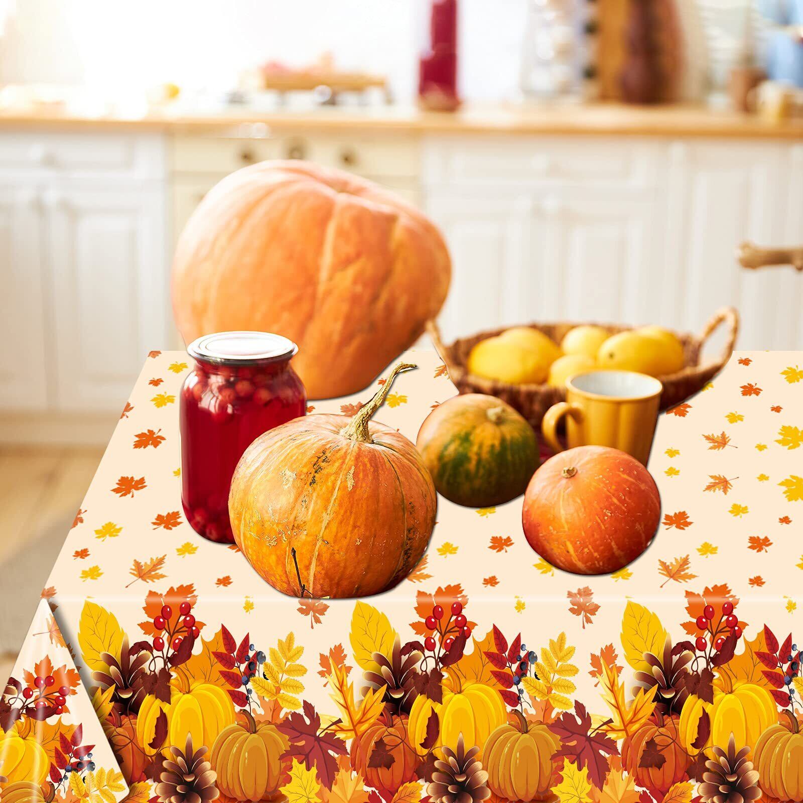 【数量限定】秋の使い捨てテーブルクロスデコレーション 秋のテーマプラスチックテーブルカバー 秋 パンプキン カエデの葉 テーブルクロス 感謝祭 パンプキンテーブルカバー 秋の収穫パーティー用品 景品 3枚