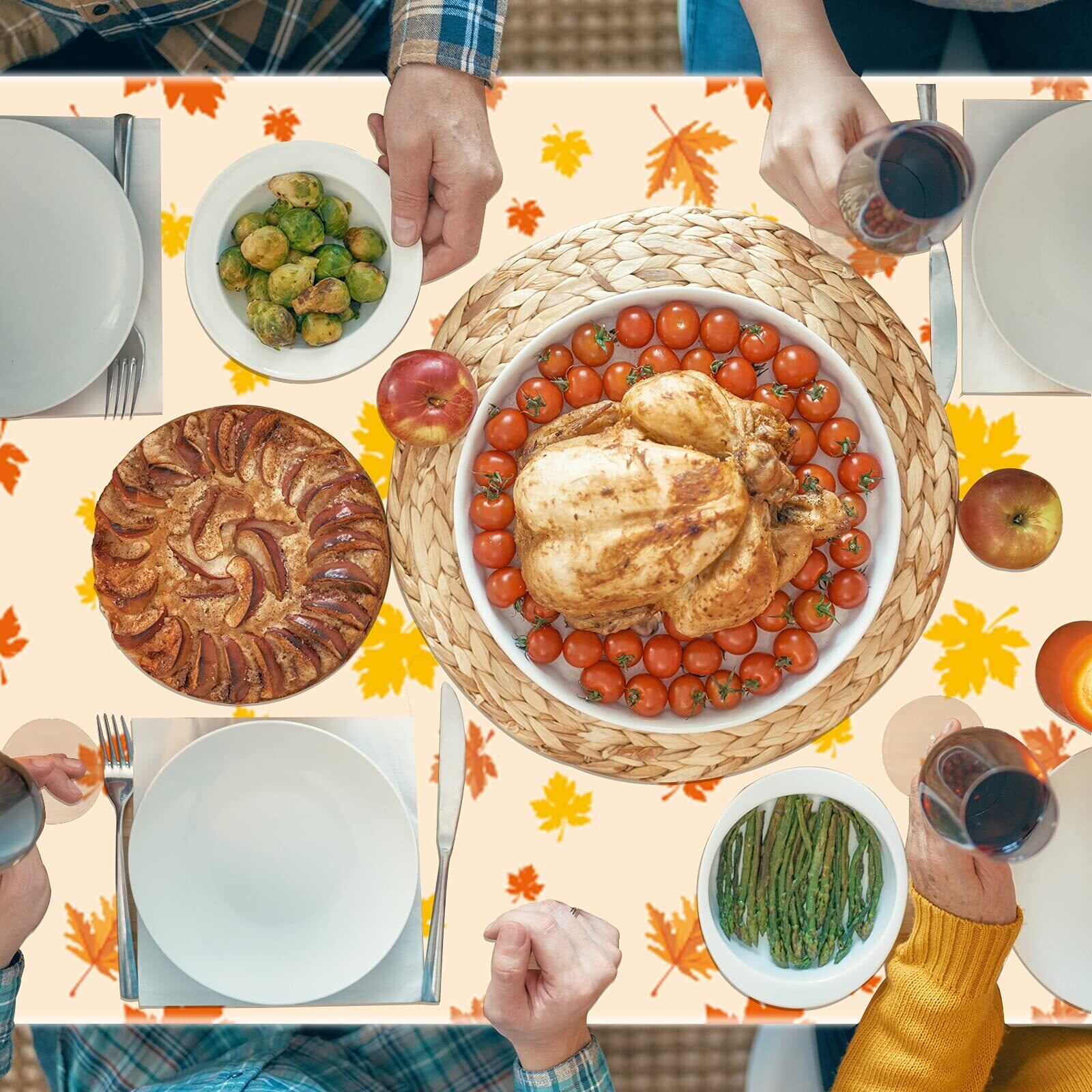 【パッケージ内容】秋の感謝祭のカエデの葉が付いたプラスチック製テーブルクロス3枚入り。寸法は約247cm x 130cm / 108インチ x 51インチです。 標準的な円形、正方形、長方形のテーブルに最適です。