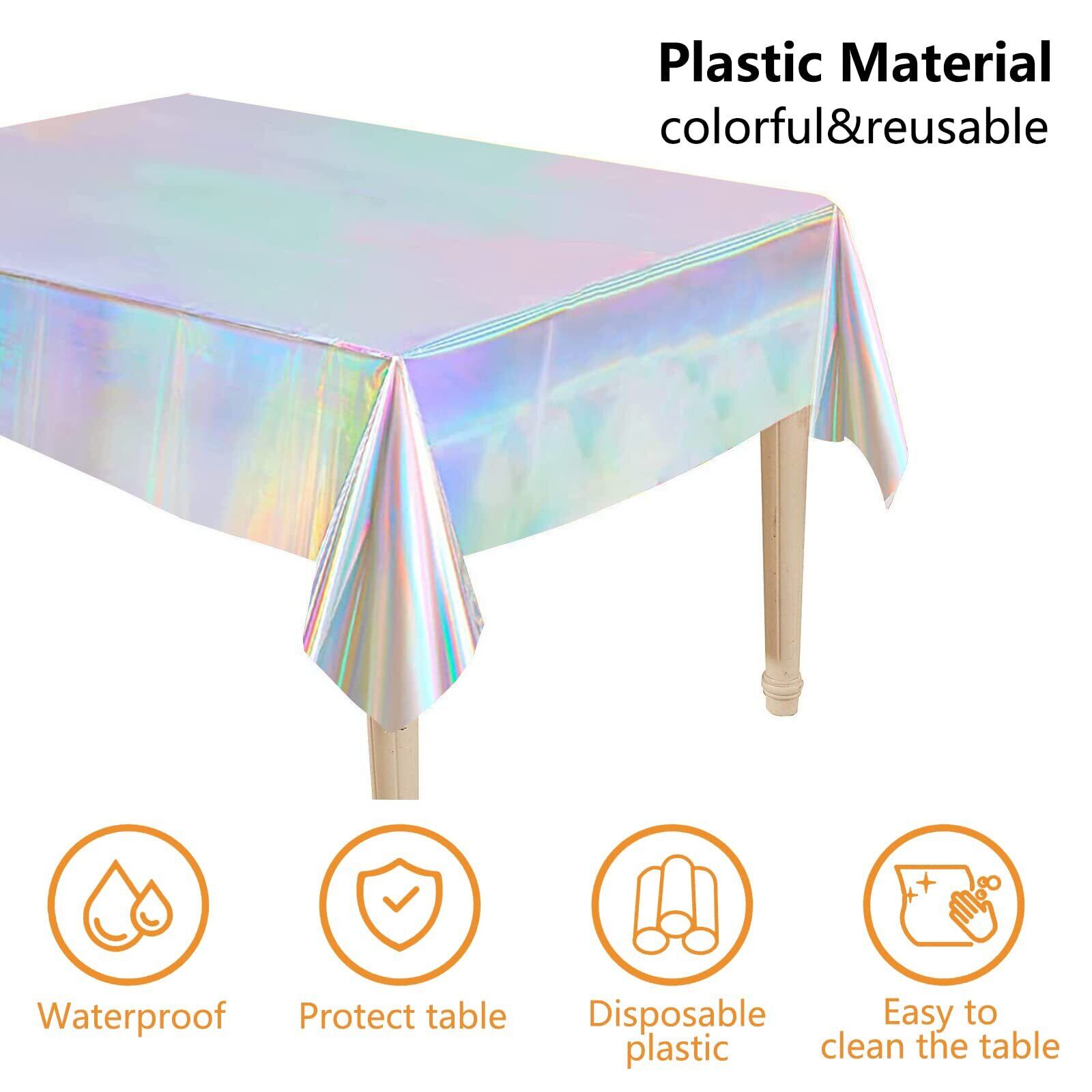 きらめくホログラフィックテーブルクロス:レーザープラスチックテーブルカバーは光沢のあるホログラフィックデザインを特徴とし、テーブル設定を幻想的で美しく、光沢のあるものにし、パーティーのハイライトとなり、パーティーの雰囲気をより楽しくします。