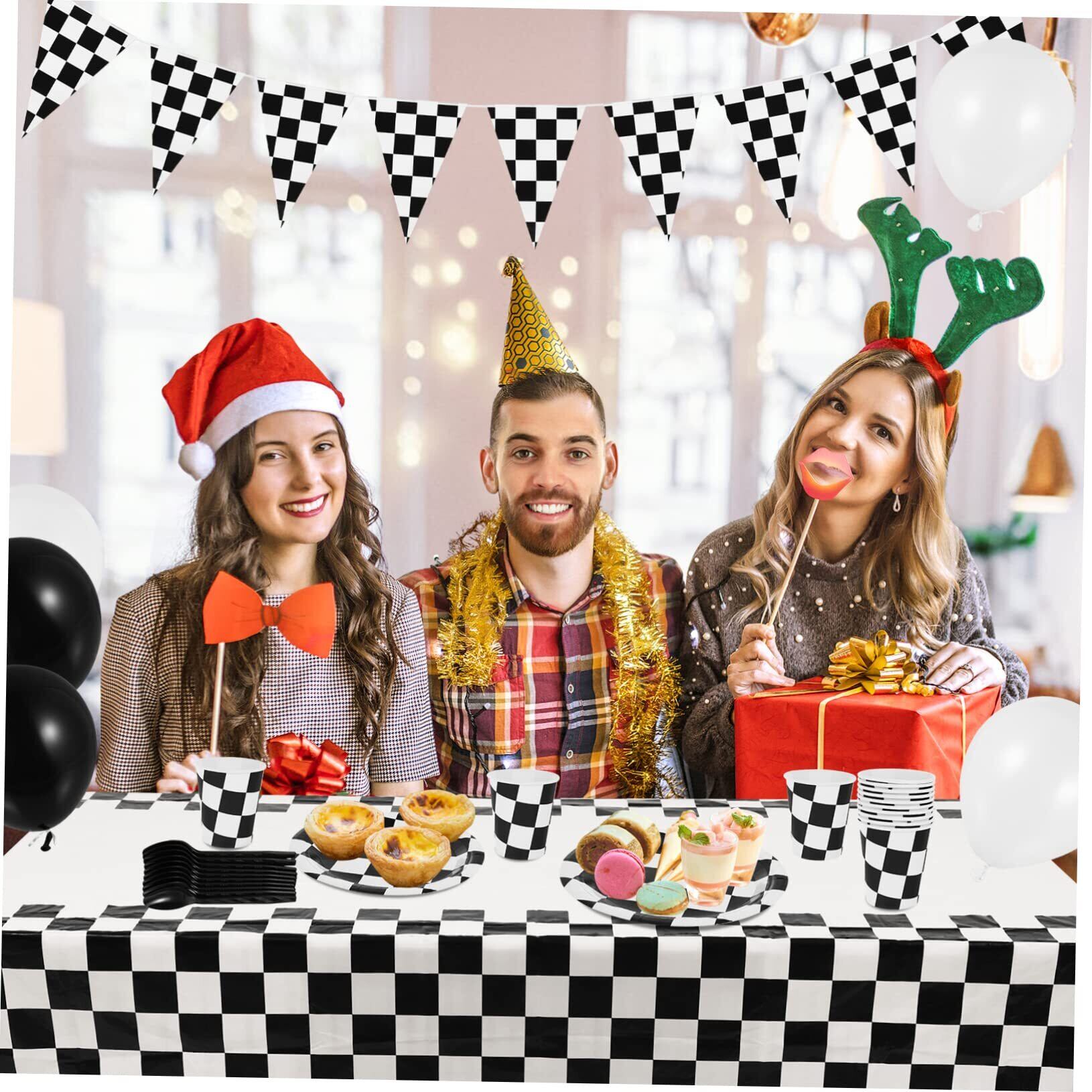 市松模様のナプキン: バナーはドア、窓、枝、壁、車の誕生日パーティー用品など、あらゆる表面に掛けることができます