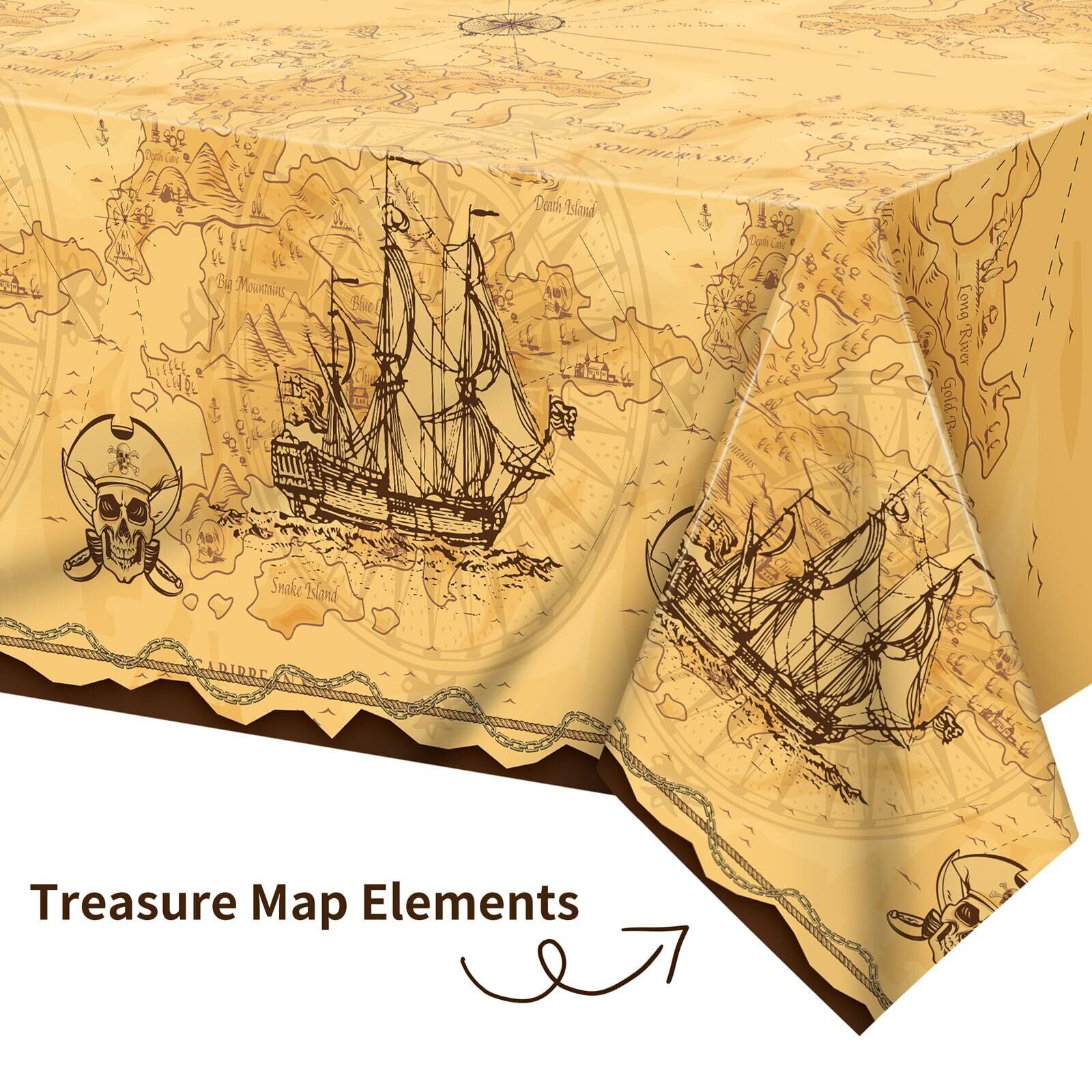 【丈夫な品質】宝物の地図のテーブルカバーは、丈夫で安全、無臭の高品質プラスチック製です。 防水性とお手入れが簡単な表面で、テーブルをしっかり保護しながら、クリーンアップを簡単に行うことができます。 これはイベントに最適です。