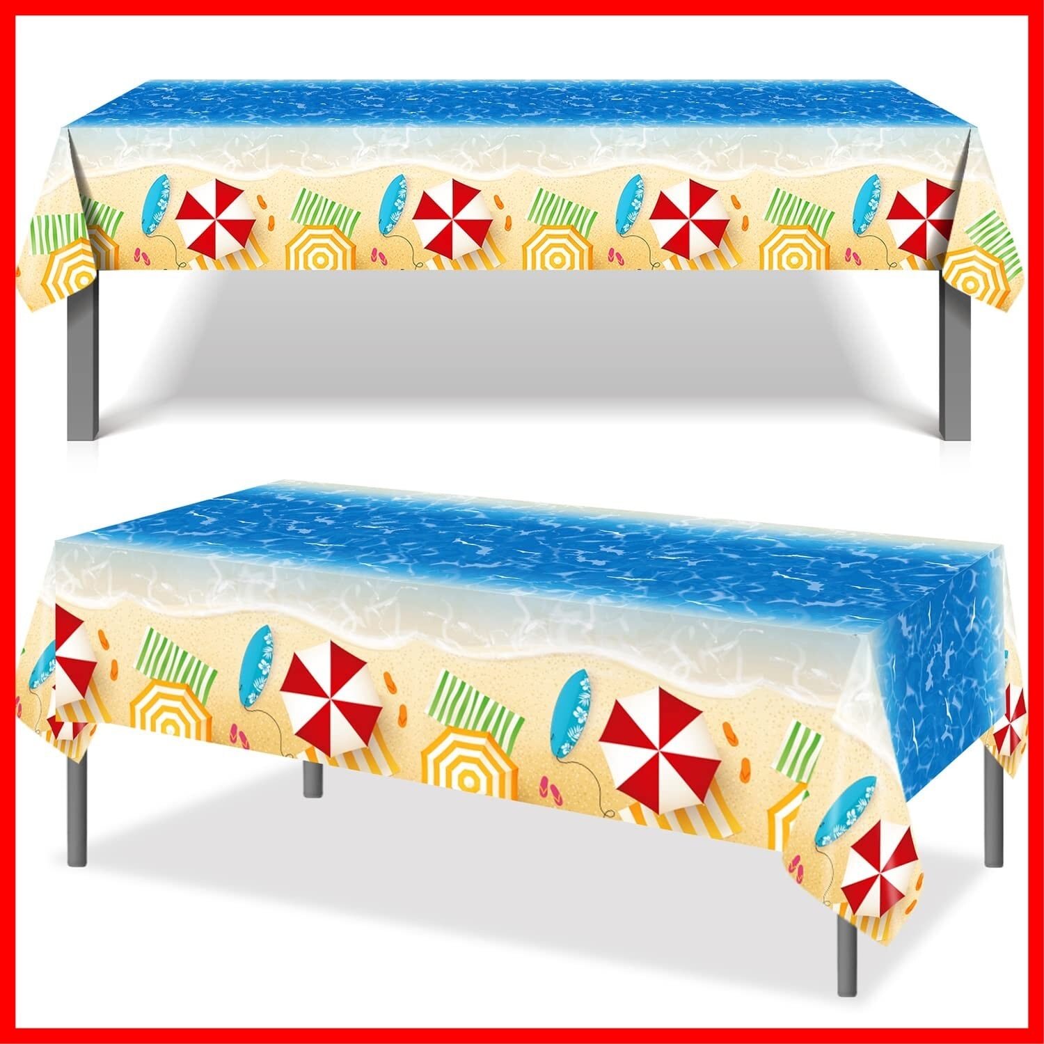 【特価セール】LIYDE ビーチパーティーテーブルクロス 2枚セット - ハワイアンビーチパーティーデコレーション プールパーティー用品 トロピカルパーティーテーブルクロス 長方形 プラスチックテーブルカバー 子供の誕生日に