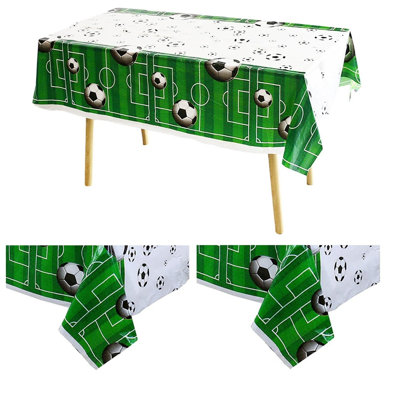 ✯【明るい色】主に白、黒、緑のサッカーをテーマにしたテーブルクロスは、明るい色と高い彩度で、パーティー、イベント、ブースをより魅力的にします。