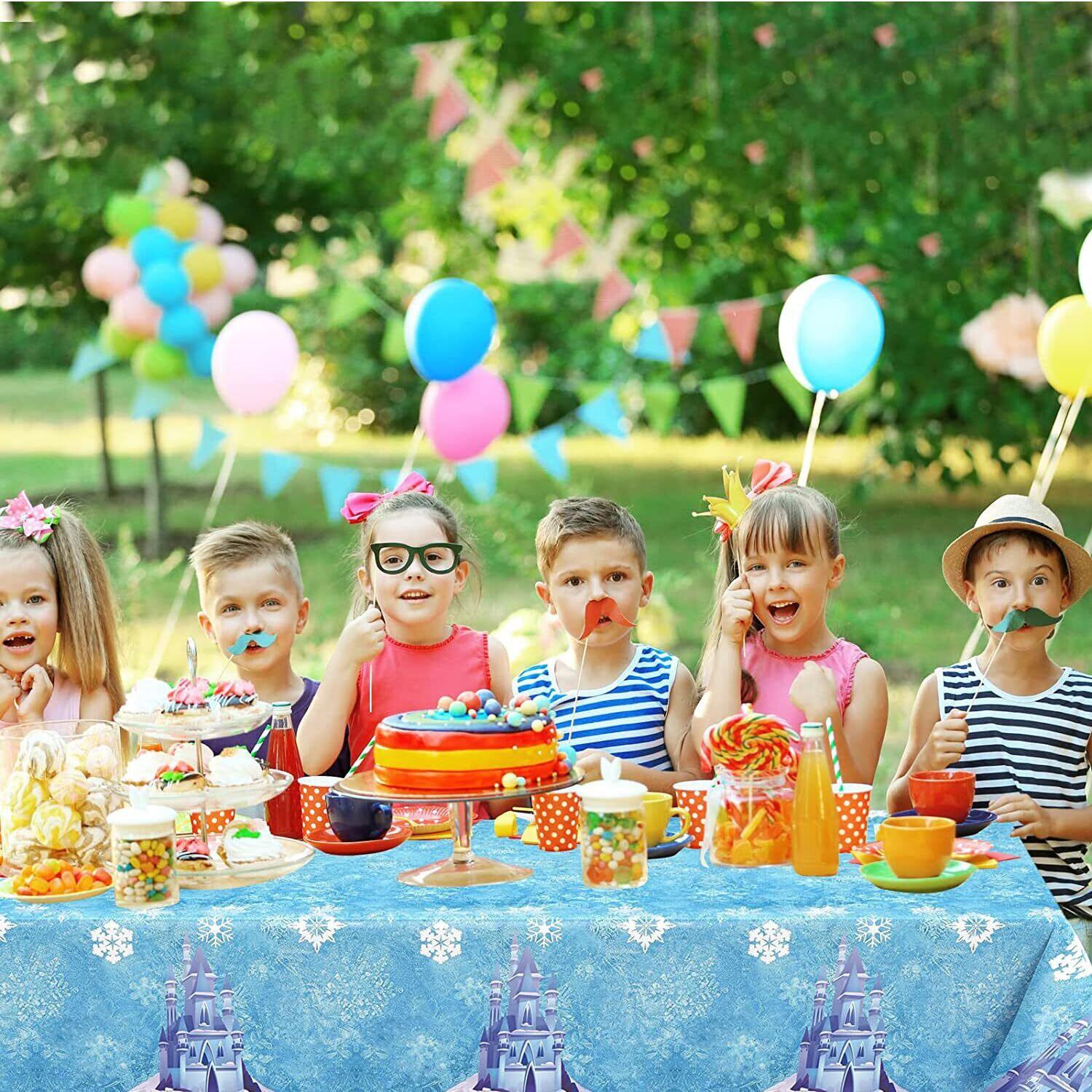Siencooray アナと雪の女王テーブルクロス 2枚パック ブルーテーブルカバー 54 x 108インチ 長方形 氷の城 雪の結晶 プリント テーブルクロス キッズ ガールズ 誕生日 冬 アナと雪の女王 テーマ パーティーデコレーション
