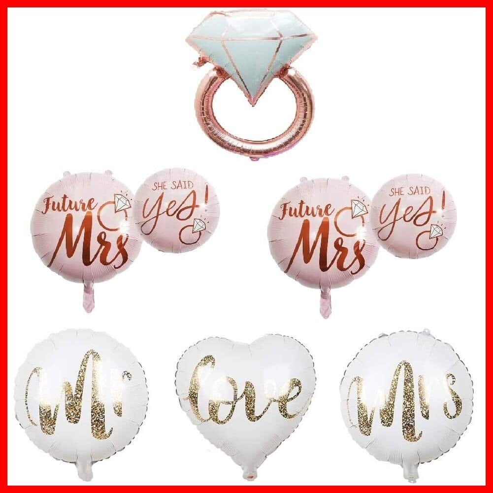 【特価商品】CheeseandU ダイヤモンドリングホイルバルーン 6個パック 22インチ ローズゴールド She Said Yes バルーン ホワイトゴールド Mr Mrs Love ホイルバルーン ブライダルシャワー 花嫁になるパーティー ウェディング 婚約装飾