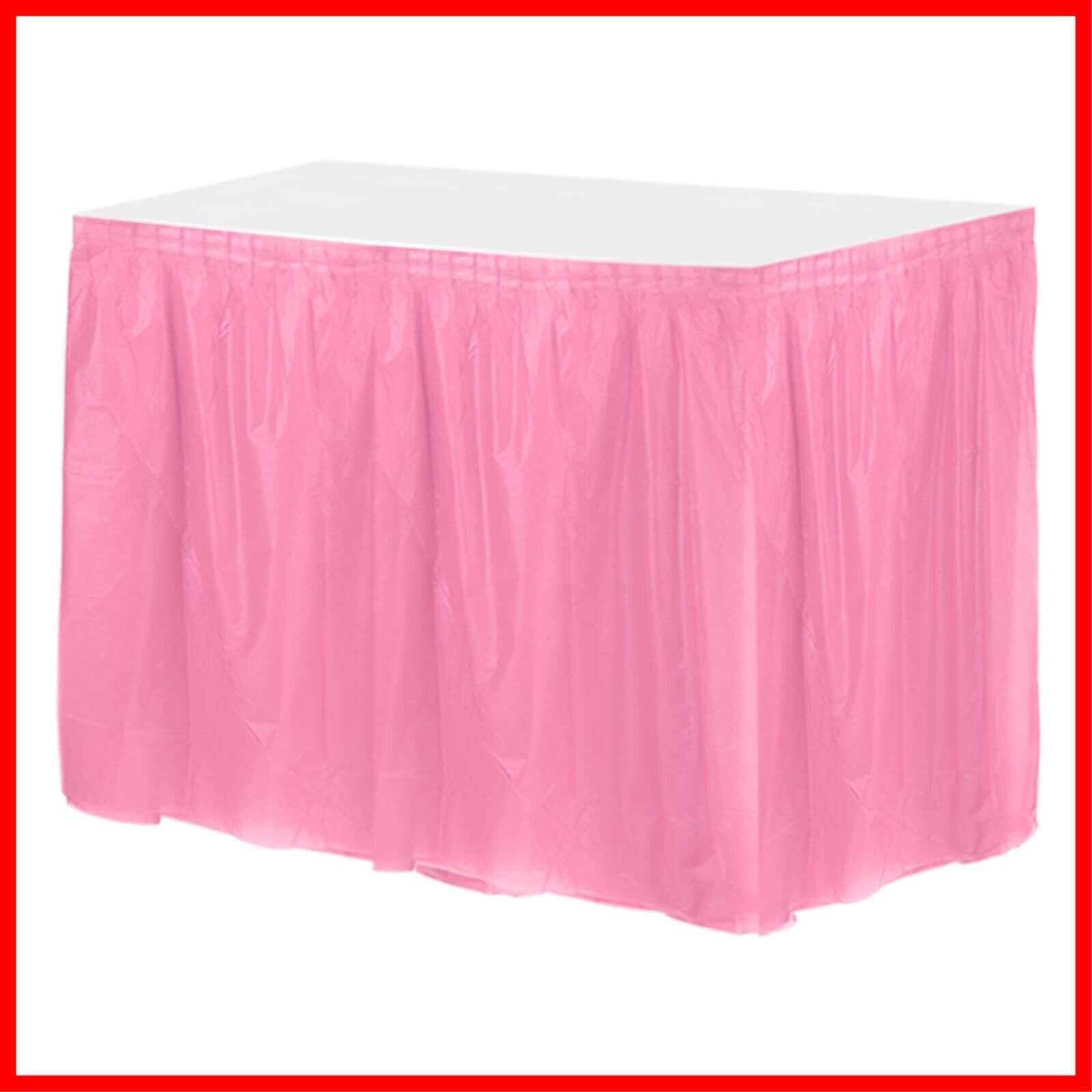 ピンクのテーブルスカート、サイズ:29" ×14フィート/73×426センチメートル;カラー:ピンク;素材:プラスチック;パッケージ内:1パックのプラスチックテーブルスカート