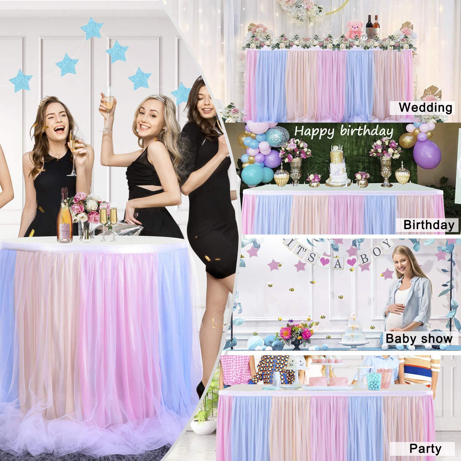 用途: このフリルテーブルスカートは、ベビーシャワー、パーティー、雑草、性別披露宴パーティー、ブライダルシャワー、洗礼、レセプションテーブル、デザートテーブル、ケーキテーブル、誕生日パーティーやホームデコレーションにも最適です。