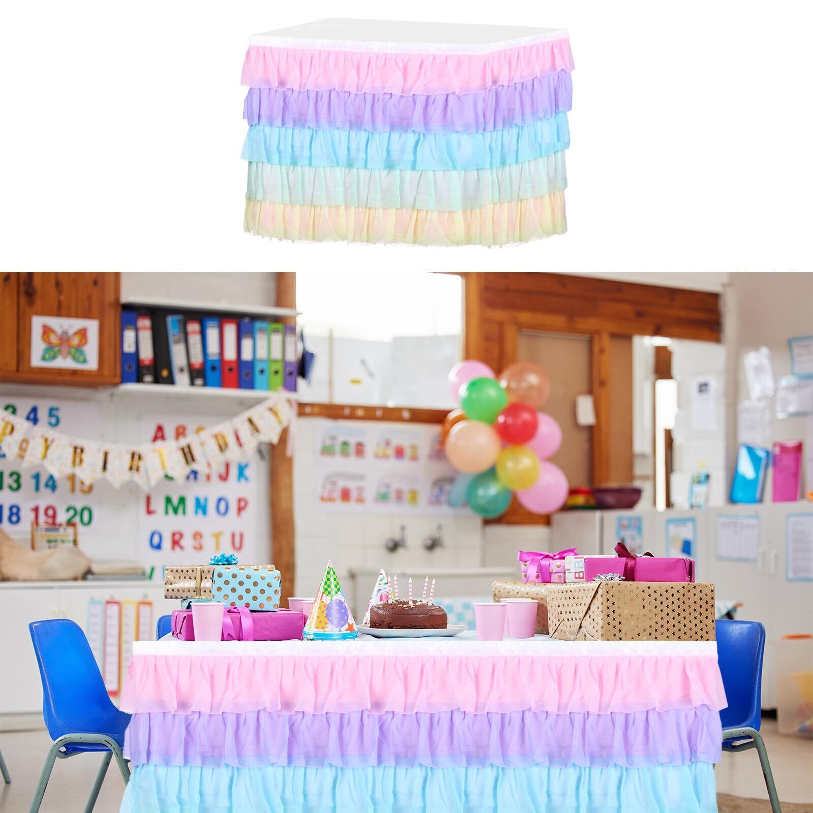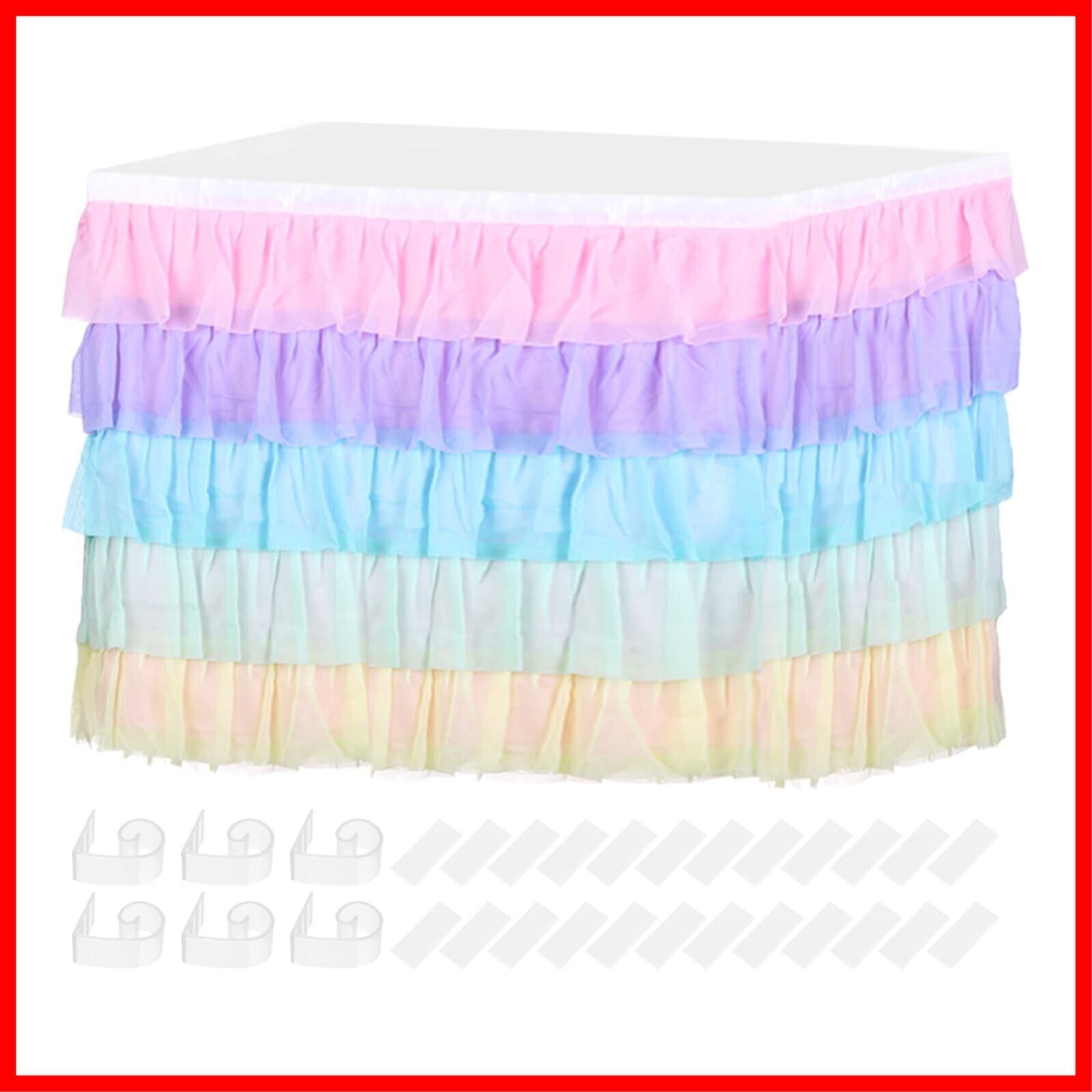 uxcell 1パック9ftマルチカラー ちゅちゅテーブルスカート 長方形または丸テーブル用 ラッフルテーブルクロス 誕生日 ウェディング ケーキ デザートテーブル 装飾用