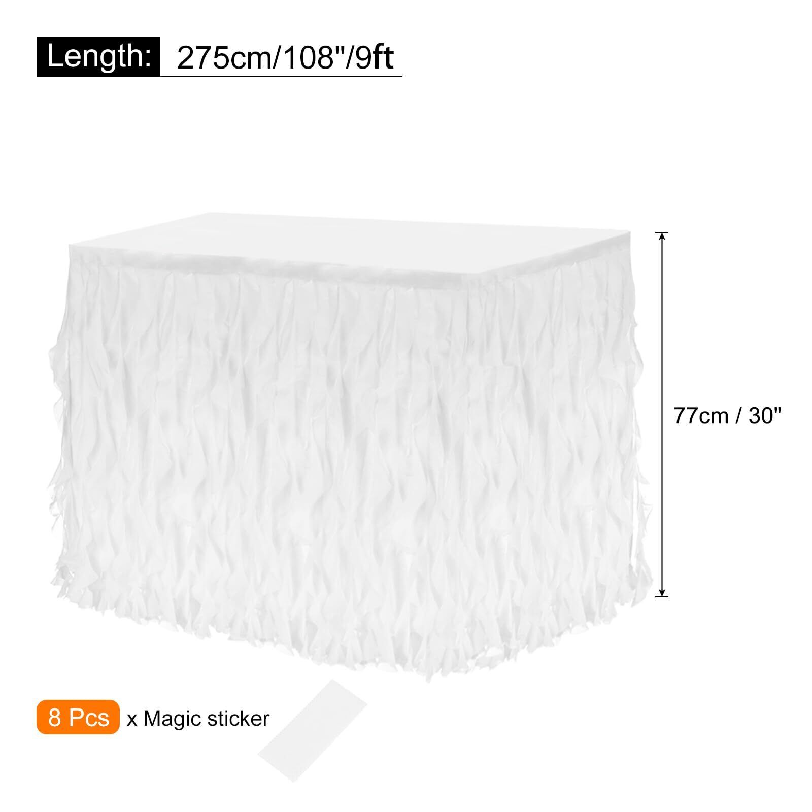 uxcell ちゅちゅテーブルスカート 長方形テーブル用 チュール カーリー ウィロー テーブルスカート フリル テーブルスカート 誕生日 結婚式 性別発表パーティー用 275 cm ホワイト