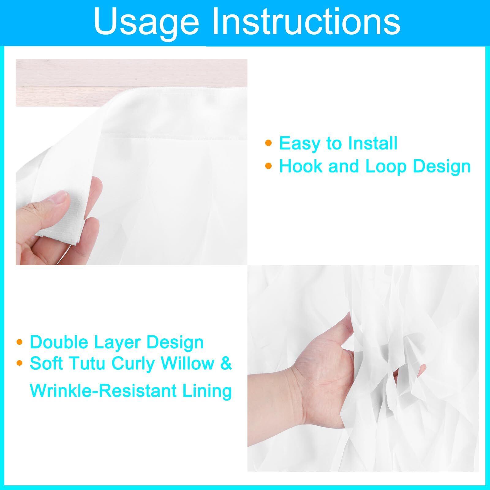 上品な光沢と柔らかくふわふわした美しさを備えたこのテーブルスカートは、誕生日、結婚式、記念日、卒業式、性別発表会、ブ ライダルシャワーなど、さまざまな機会に適しています。パーティーの装飾に最適です。