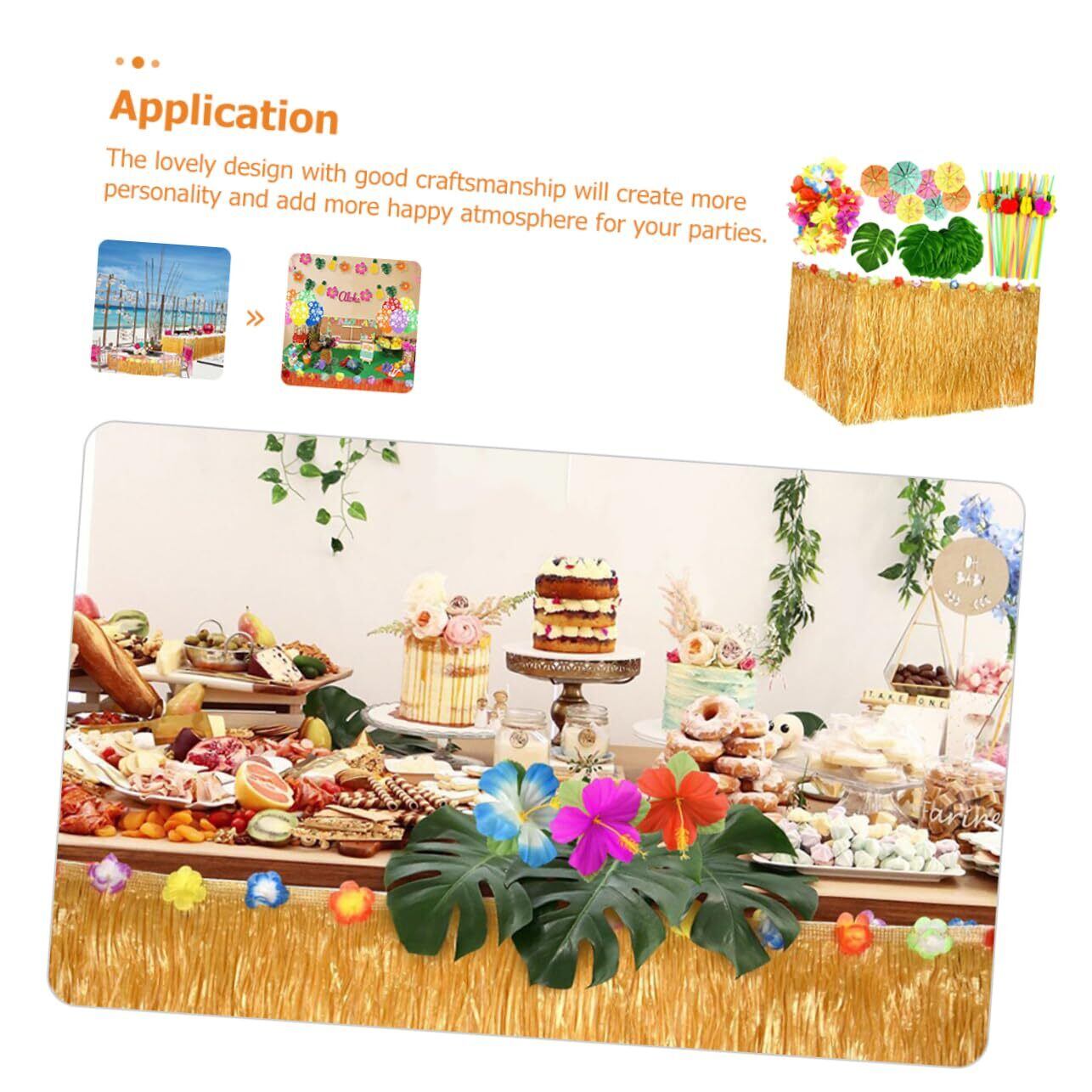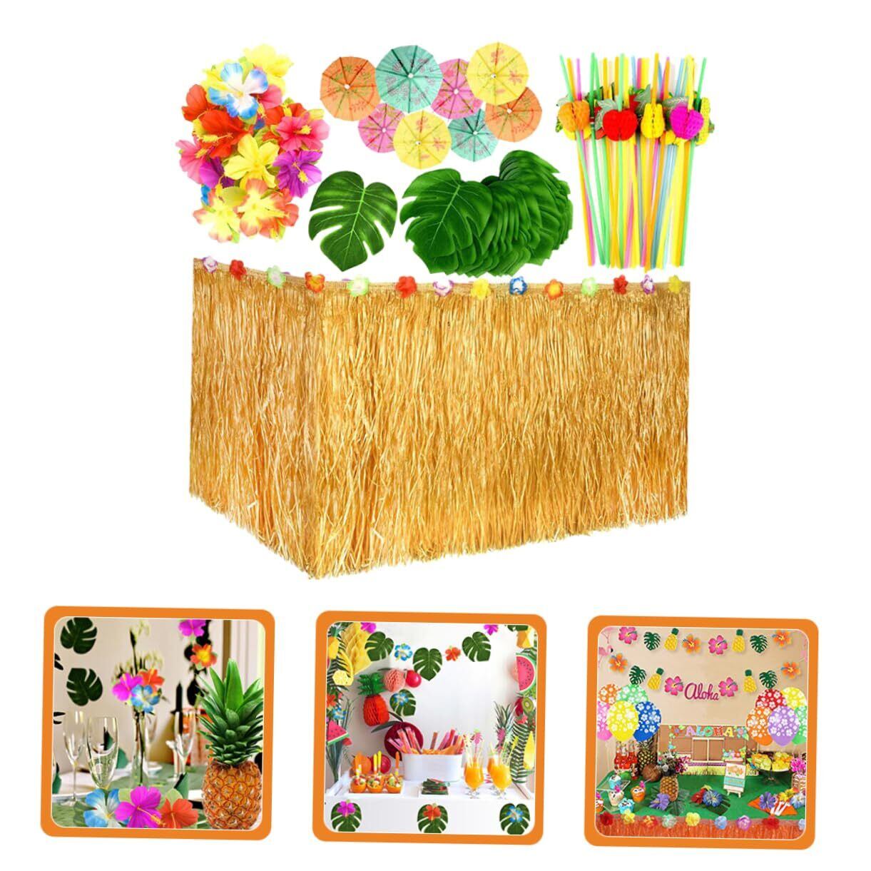 Cabilock 1 セット ハワイアンテーブルスカート ハワイアンルアウ ビーチパーティー フラミンゴテーブル ストロー ハワイアンデコレーション ガーニッシュ メイクアップセット
