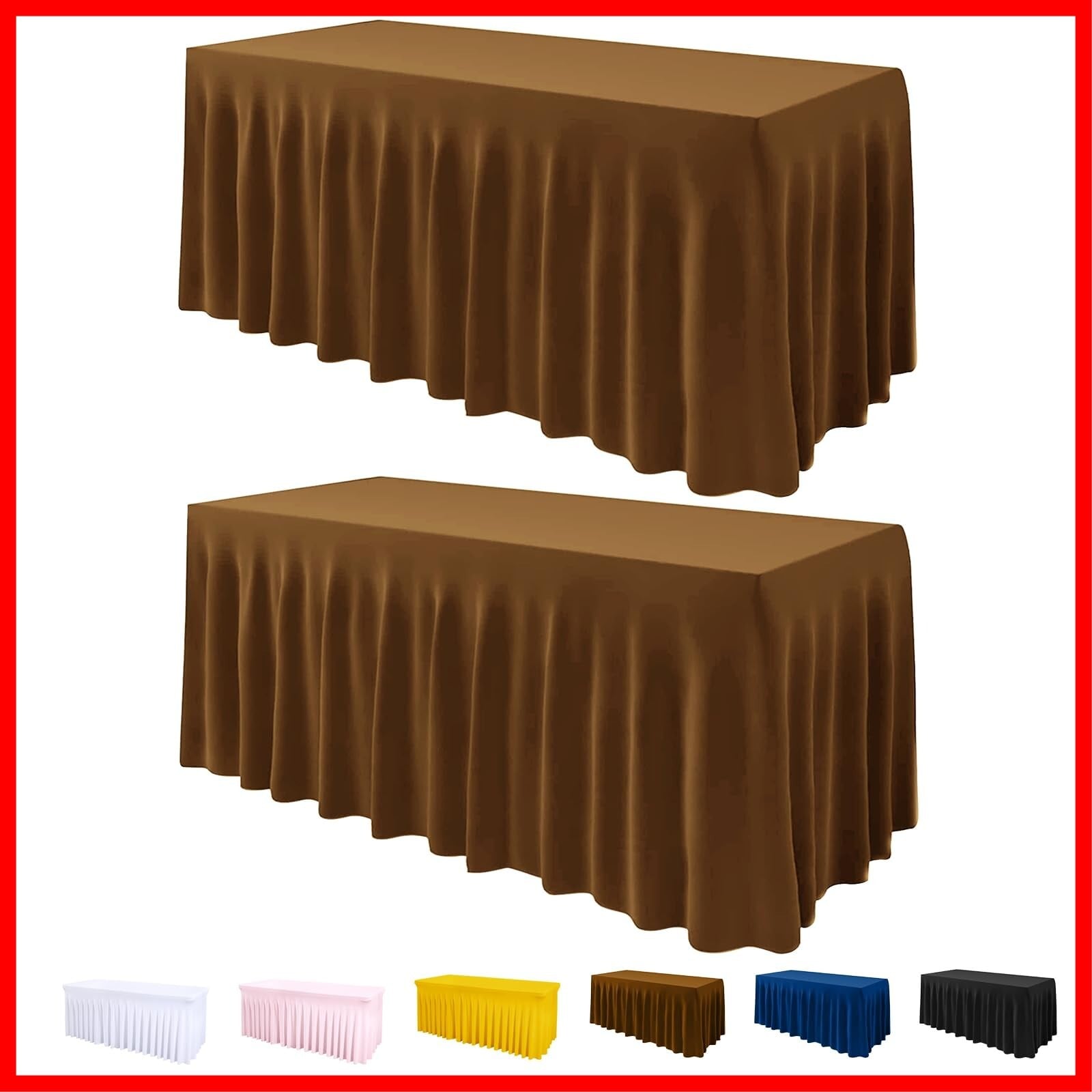 ManMengJi テーブルカバー テーブルスカート ワンピース 折りたたみテーブル用 6フィート スパンデックス フィットテーブルクロス フリルスカート付き 結婚式 宴会 パーティー ベンダー用 (ブラウン 2パック)