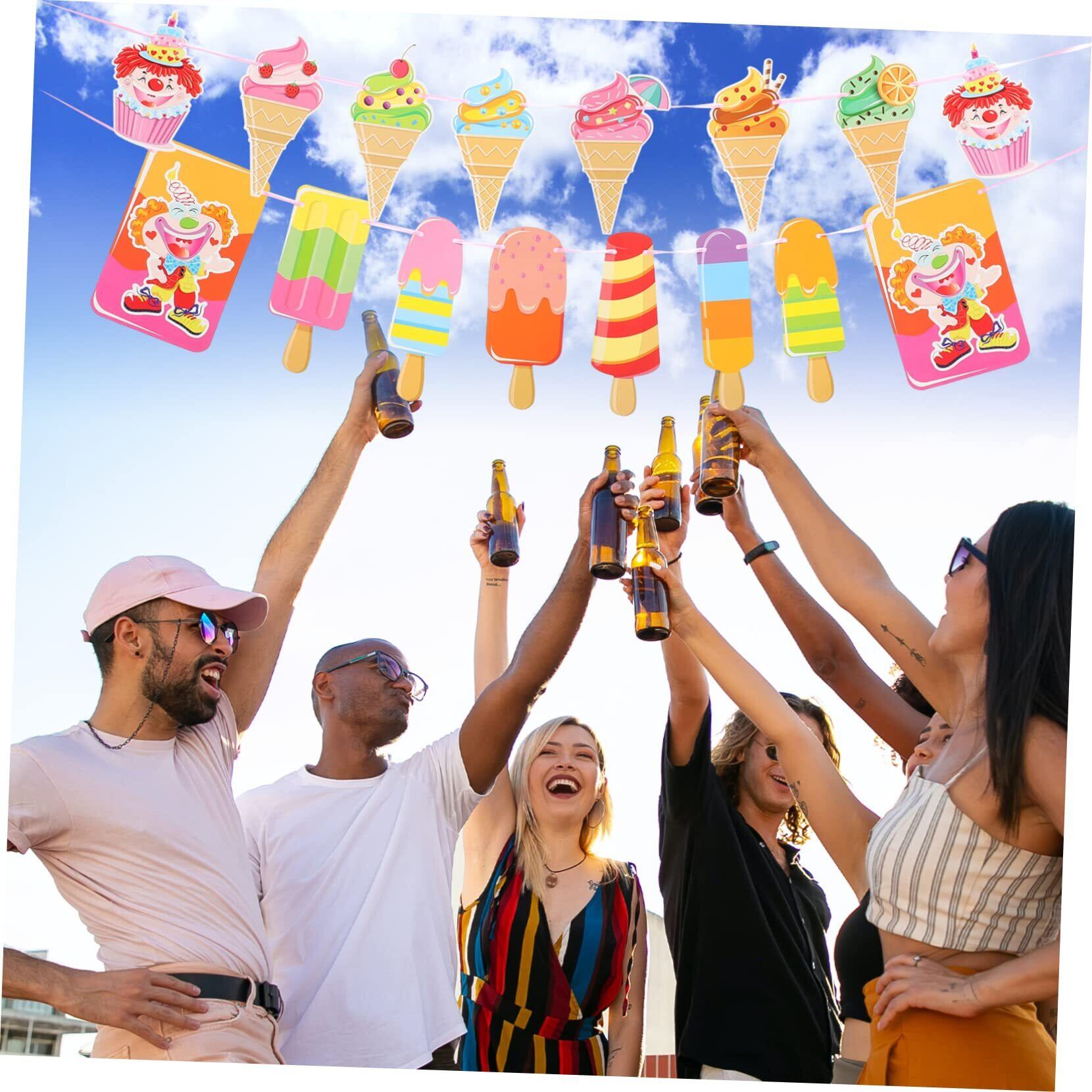 アイスキャンディーのバナー: ており、素敵な模様の装飾が施されており、誕生日パーティーに彩りを加えることができます。