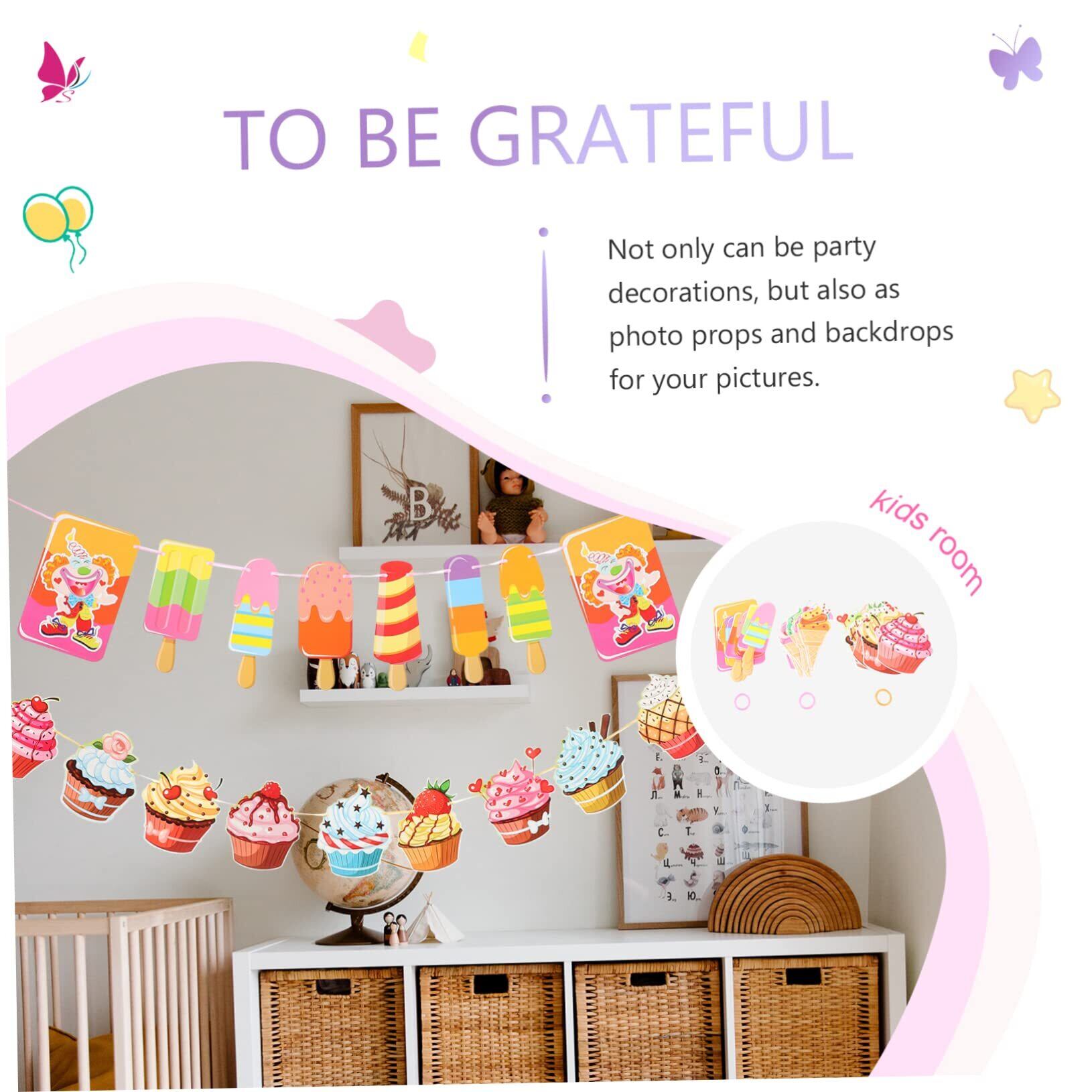 可愛らしい「Lurrose アイスクリームバナー」が新登場です!/特徴:3セットのバナーは、誕生日パーティーや特別なイベントにぴったりなアイスクリームデザインで、華やかな雰囲気を演出します。